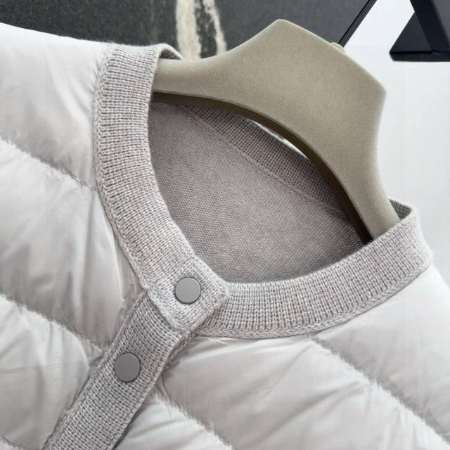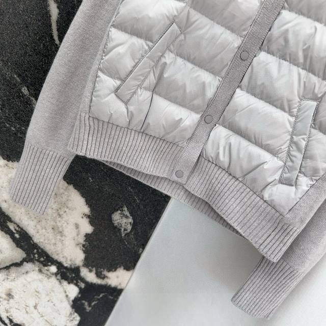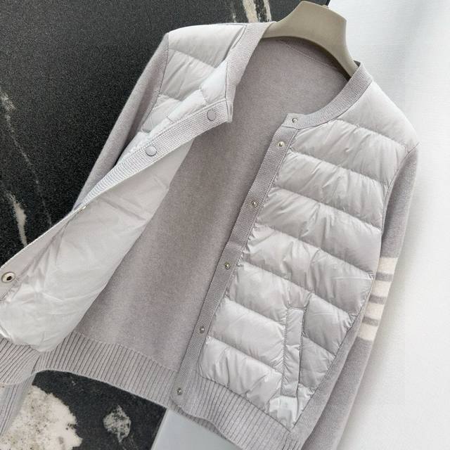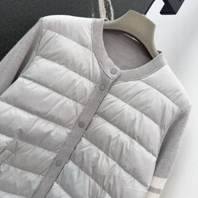 Tb 24Ss Autumn/Winter Hot Selling Wool and Down Trim Round Neck Short Down Jacket, National Standard Imported 90% Down, Lightweight and Comfortable, with Built-in Heating and Warmth Retention Function, Merino Wool Trim Cuffs for a Comfortable and Thick Feel, Minimalist Luxury, H-Line Fit, Flattering and Slimming, Casual and Versatile, Italian Elegance, High-End Feel, Casual and Stylish ML
