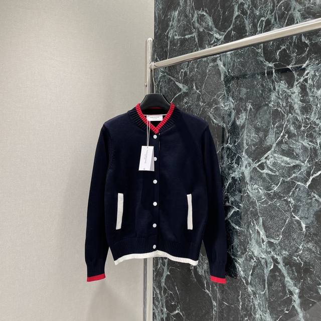 Tb 25 New early autumn style contrasting collar knitted classic three-bar stripes show the brand's most famous academic style. It is relaxed and fashionable with any style. The sleeves and collar contrast stripes echo each other and the pocket design is full of contrasting stitching details, which is very versatile and beautiful. Two colors Sml