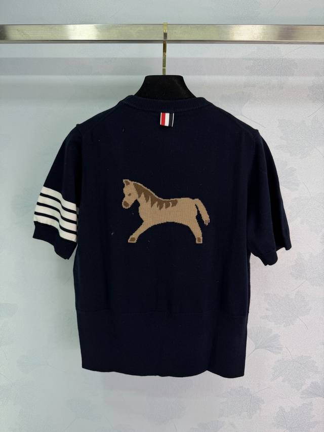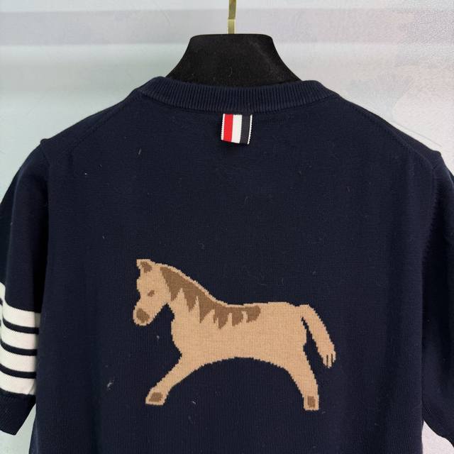 Tb*2026 Year of the Horse Limited Edition Knitwear, made of 100% wool, soft and warm, featuring a small gold horse embroidery on the back and four stripes on the cuffs for easy identification. The dark blue color is versatile, looking great worn alone or layered over a shirt, exuding a preppy style. Perfect for holiday parties, everyday wear, and more. Available in 3 sizes: S, M, L. T226B145 DDD