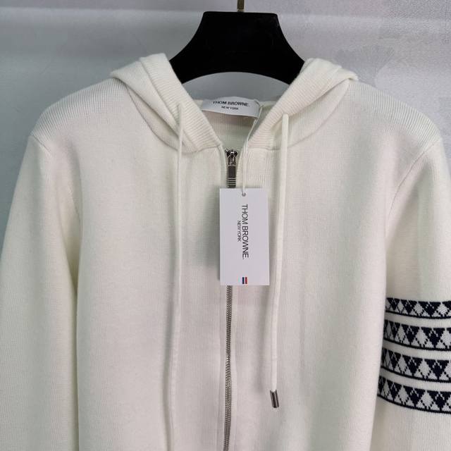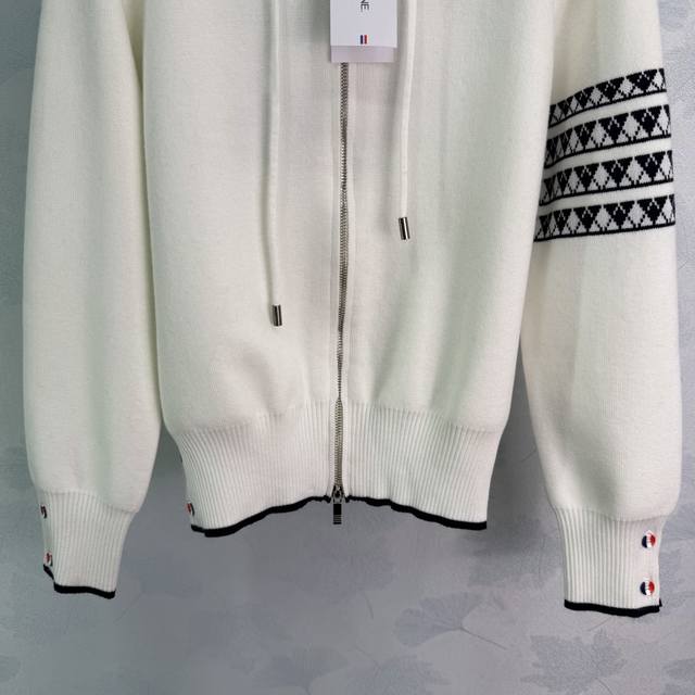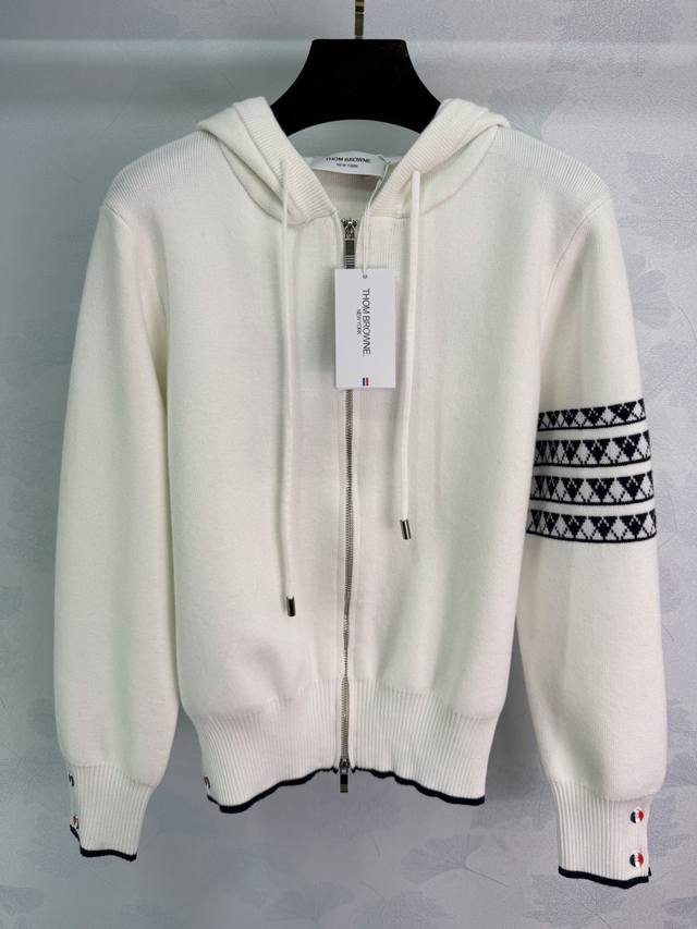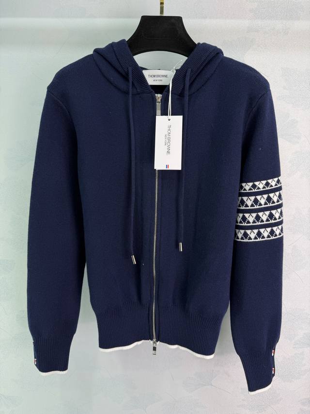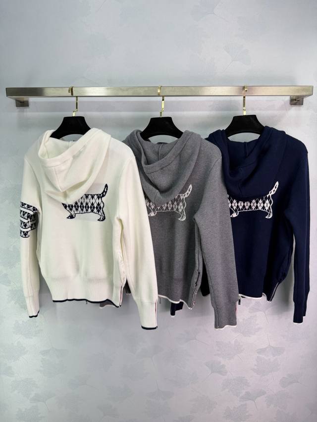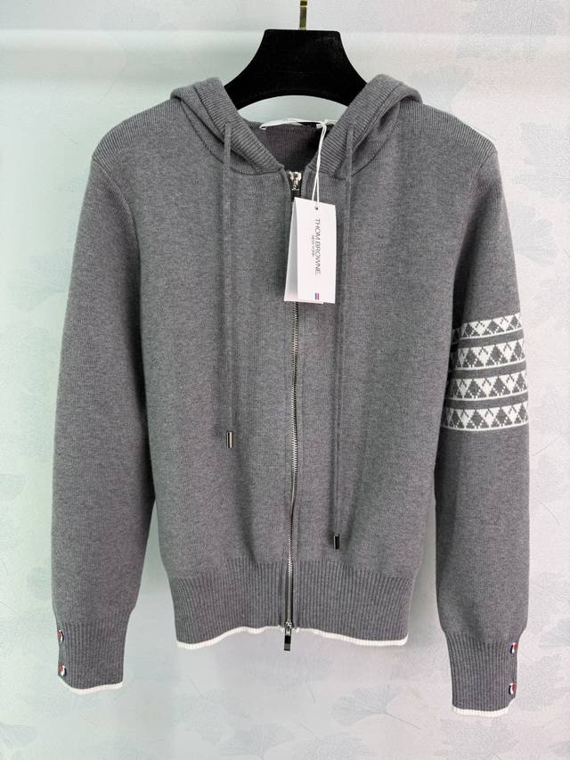 Tb*25 Autumn/Winter New College Style Zipper Hooded Knit Cardigan, made of soft knit fabric, warm and comfortable. The four-stripe geometric pattern on the cuffs adds a touch of sophistication. The hood and zipper design makes it easy to put on and take off. A must-have for autumn and winter, suitable for both work and casual wear. 3 colors, 3 sizes: S, M, L, T226B. DDD