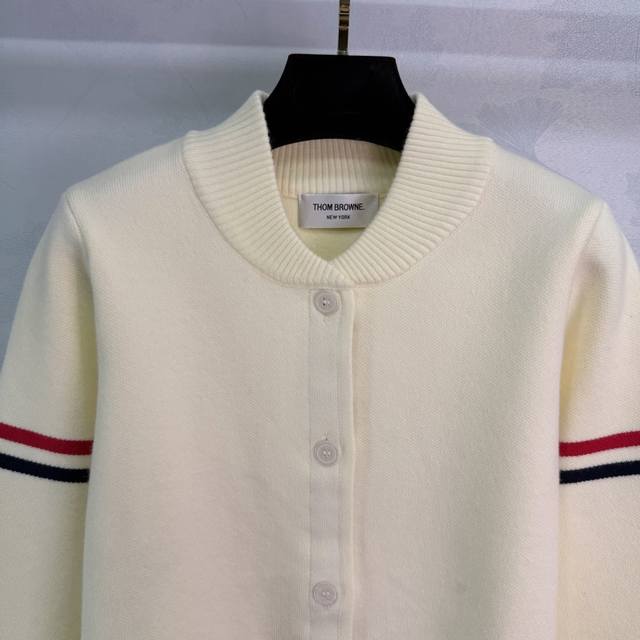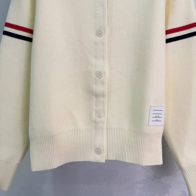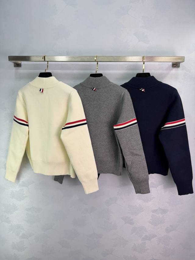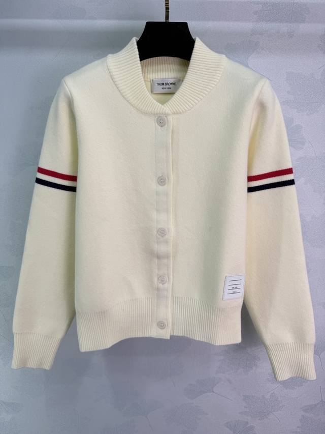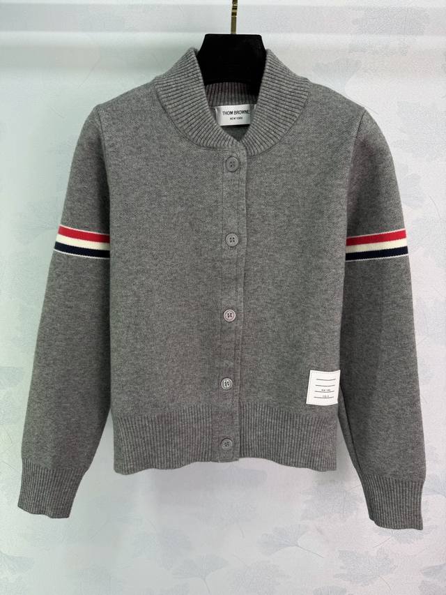 Tb*25 Autumn/Winter New Style Double-Sleeve Striped Knit Cardigan. Classic baseball collar design. Red, white, and blue stripes on the sleeves. Single-breasted placket. Soft and comfortable double-layered knit, very thick. Pairs well with skirts or trousers. Youthful and preppy style! 3 colors, 3 sizes, S, M, L, T226B. DDD