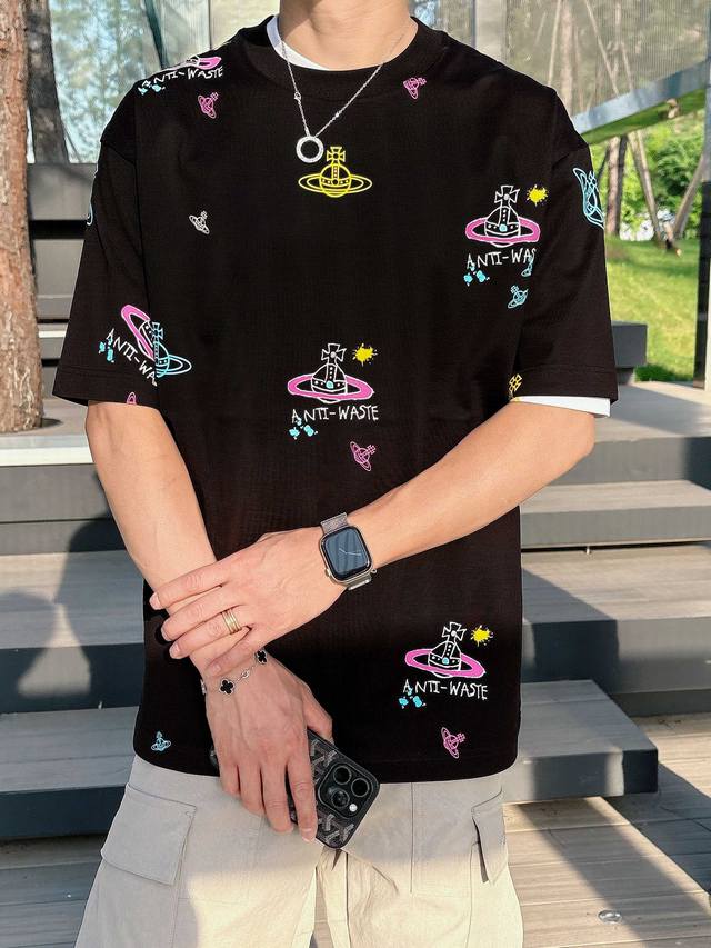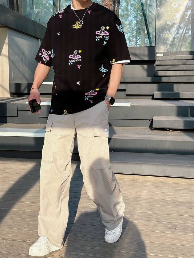 The Empress Dowager's 2025 Spring and Summer new model is the first to be launched in the counter. The latest short-sleeved round neck T-shirt is high-end custom-made and avant-garde and fashionable! Brand Logo heavy craftsmanship design High-end custom mercerized cloud cotton fabric. Soft to the touch. Comfortable to wear. Exquisite sewing at the counter level. Fine workmanship. The upper body effect is invincible and handsome! A must-have item for men!