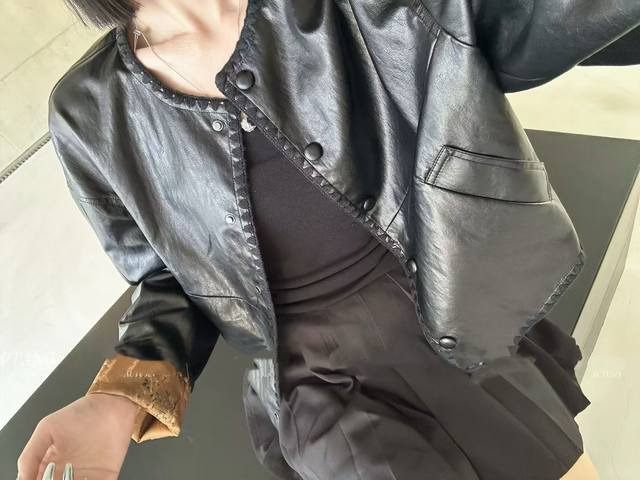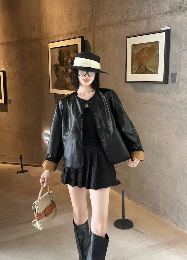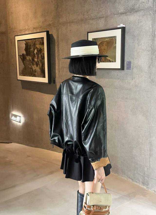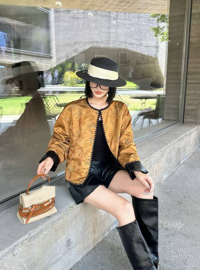 The floral leather jacket is made from imported British leather. The fabric is a blend of heavyweight rayon satin and acetate. The satin is shimmering and elegant, with a subtle relief effect on the surface. The pattern is three-dimensional, gorgeous and elegant, demonstrating a unique style and charm. Smlxl