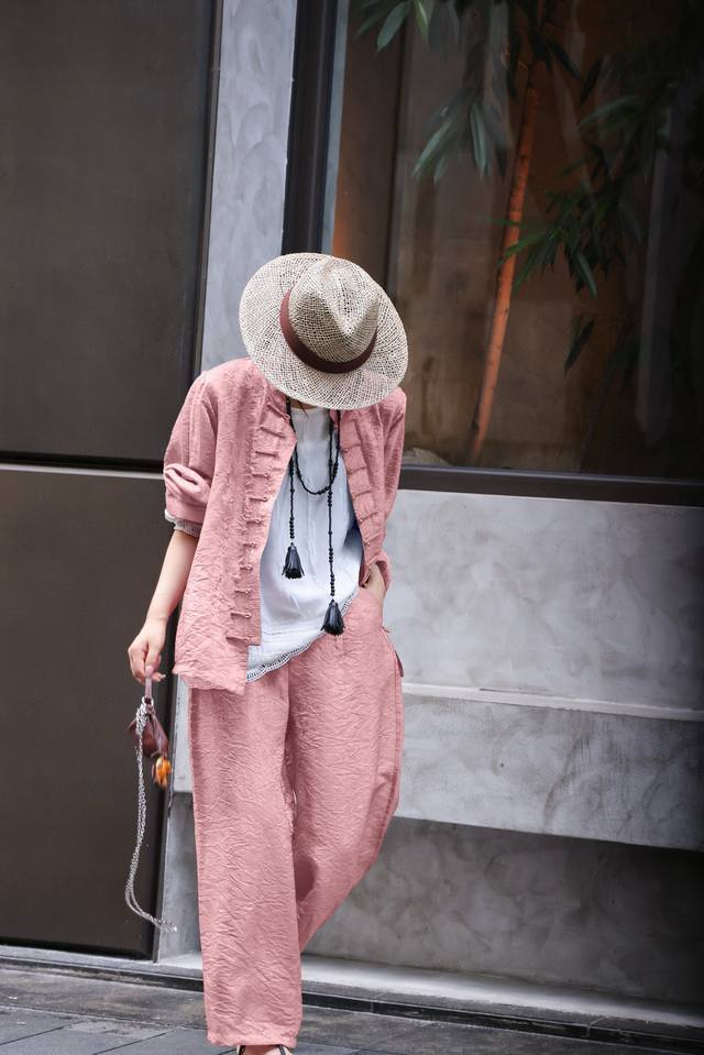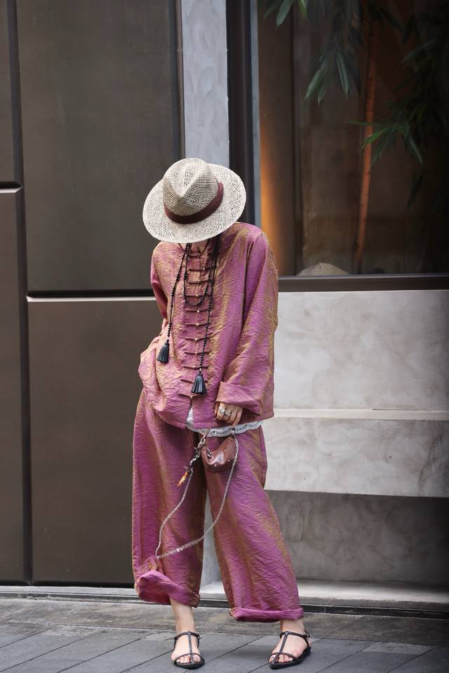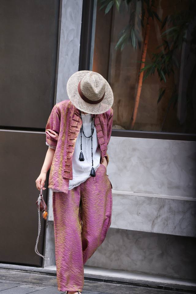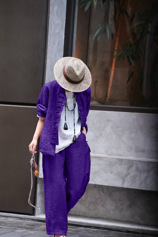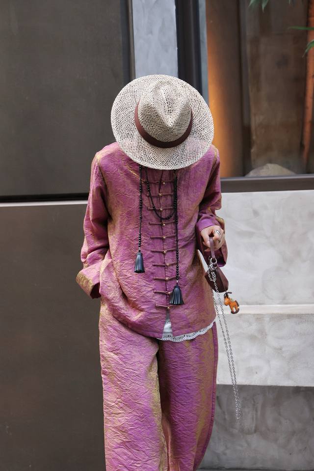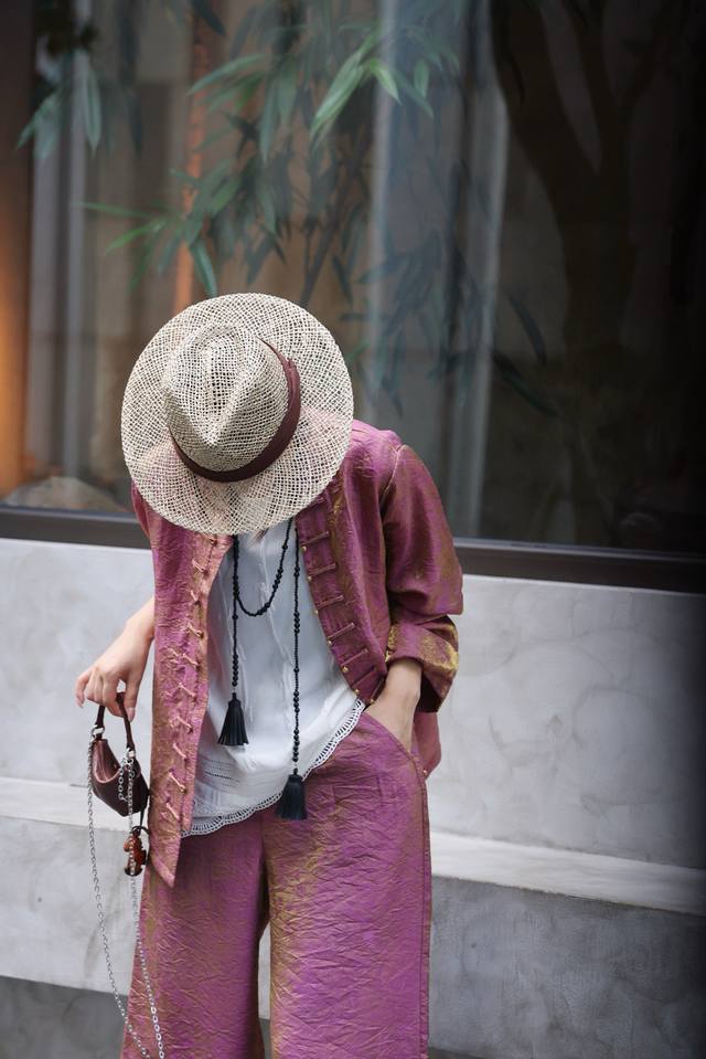 The high-end and elegant satin buttoned new Chinese suit is finished with a touch of calm and profound new Chinese green, which combines the elegance of traditional Chinese style with the simplicity of modern style. The handmade buttoned button with a sense of design and color is like the punctuation of the title page of an ancient book. It is implicit and has a unique style. The soft and friendly peach pink has a faint sense of alienation and is full of fantasy. It is not picky about skin color and is visually cool. It makes the skin look whiter. The rich gilded purple retains the noble and mysterious artistic conception and also reflects the oriental aesthetics and rich poetry. Smlxl