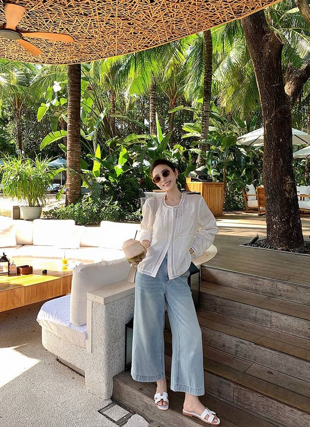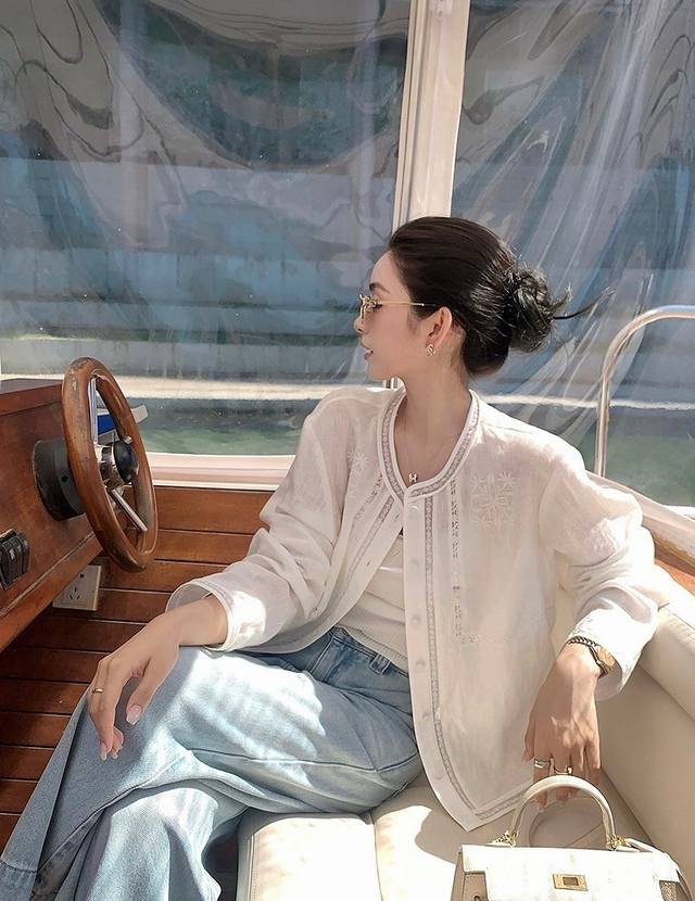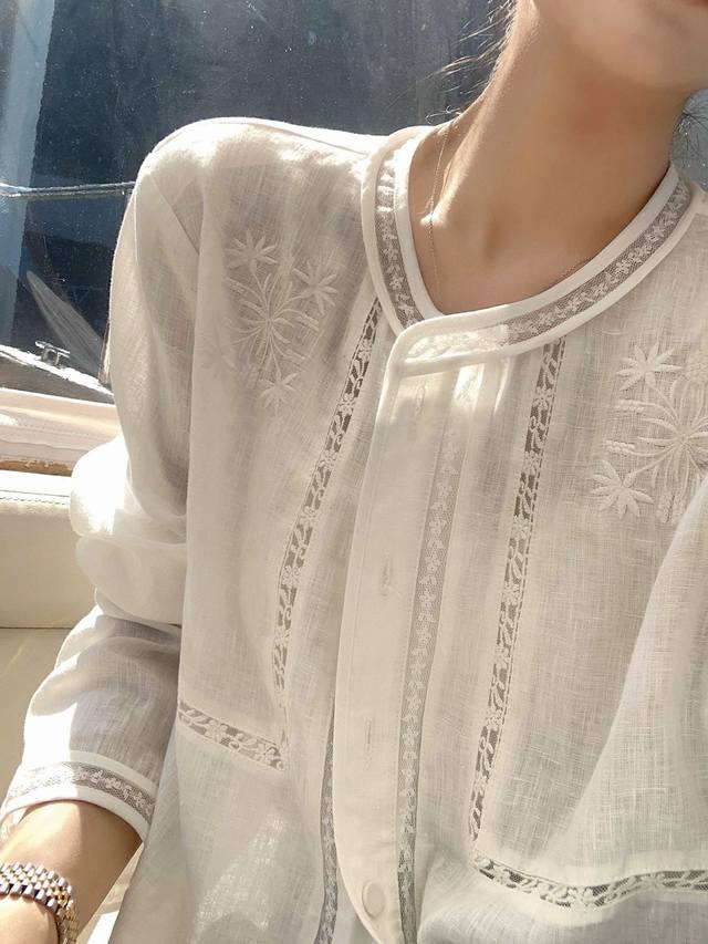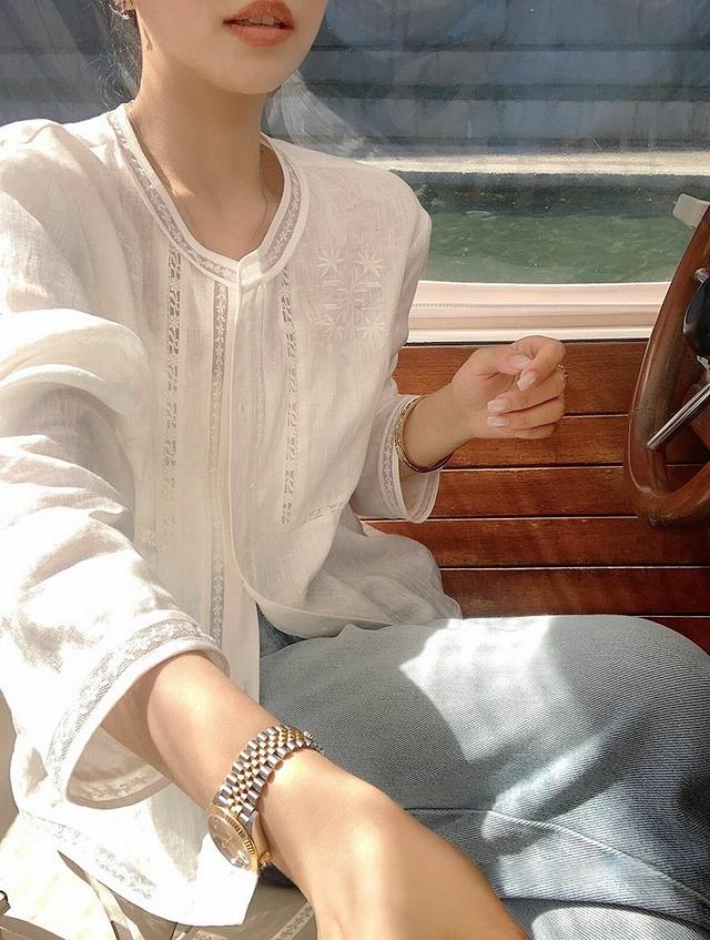 The new autumn linen handmade ethnic style embroidered blouse has a simple color