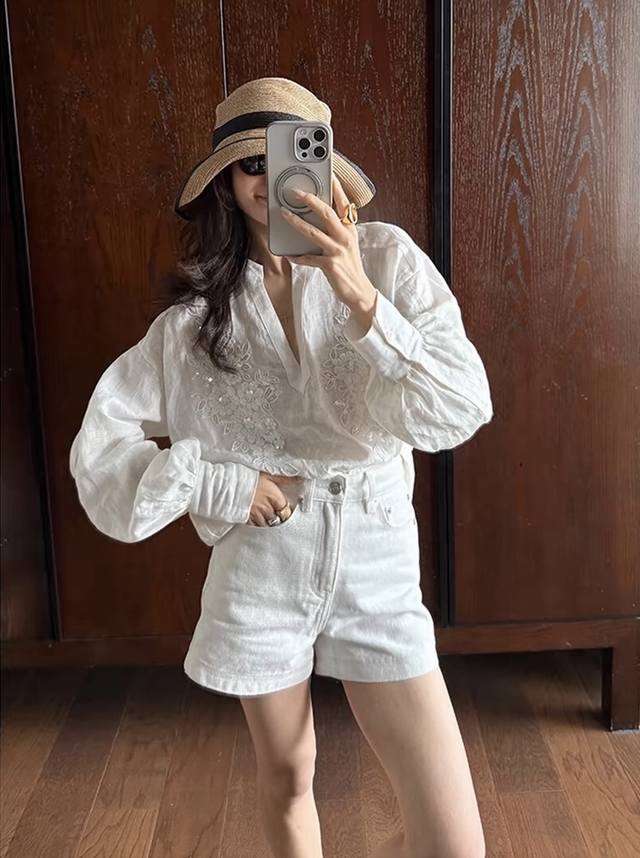 The new autumn style heavy embroidery pullover white linen V-neck long-sleeved shirt uses an innovative soft washing process to process the linen to form a texture with a slight sense of texture and drape, with its own crispness! The V-neck design visually modifies the shoulder and neck lines, the beaded crochet design is elegant and layered, the embroidery is exquisite and three-dimensional, and the exquisite and complex workmanship can be seen from the stitching. The micro-bling effect is eye-catching but not overly exaggerated, and the sense of luxury is full. The upper body is very loose and gives people a very relaxed state. The loose version leaves a margin, which can be easily controlled regardless of fat or thin. It is loose but not baggy, and the upper body is clean and generous! Recommended single color three sizes SL bulk goods have been shipped