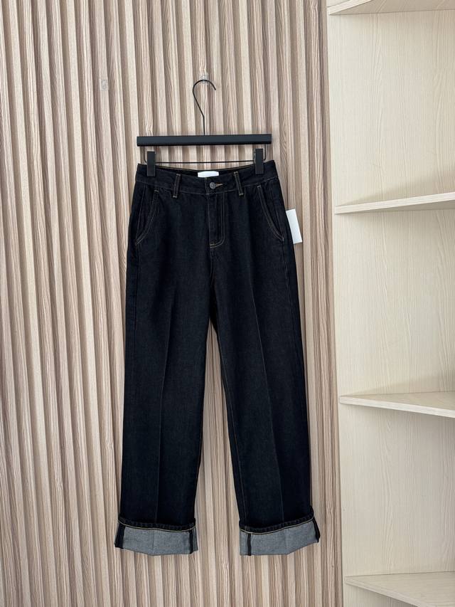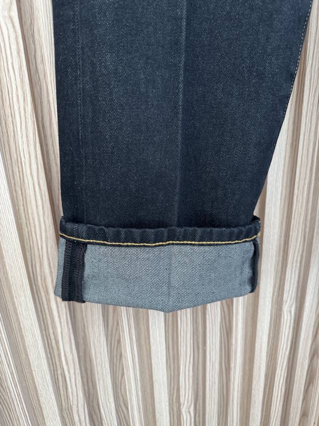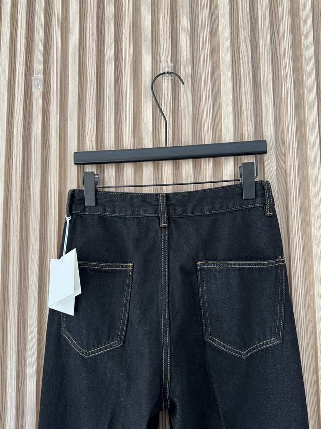 The Row Spring/Summer 2026 New Arrival: Minimalist High-End Old-Money Style Straight-Leg Denim Trousers with Yellow Topstitching. Made with exclusive custom-made imported denim fabric, the contrast between the washed raw denim and yellow stitching creates a unique and fashionable style. Paired with a trendy thin red belt, it's incredibly stylish! Very European and American style! Wearing it gives you a fashion blogger vibe! Sizes 24-30 DDD