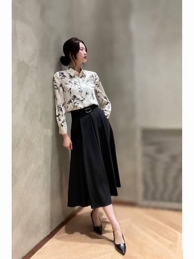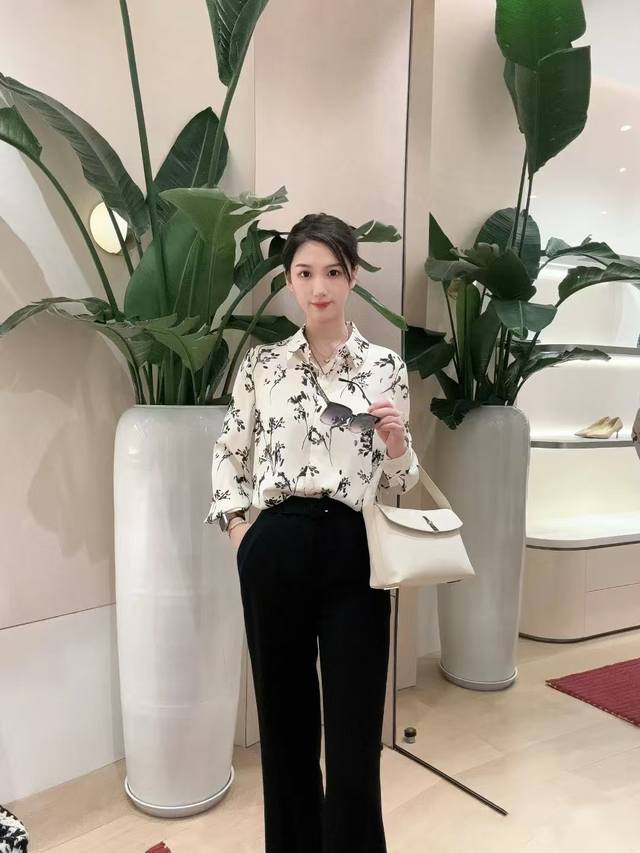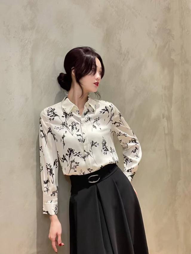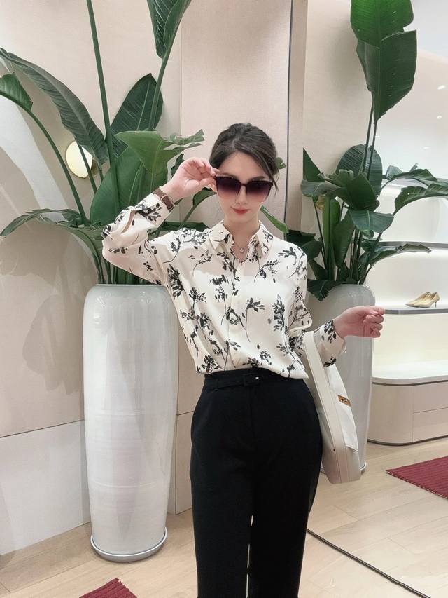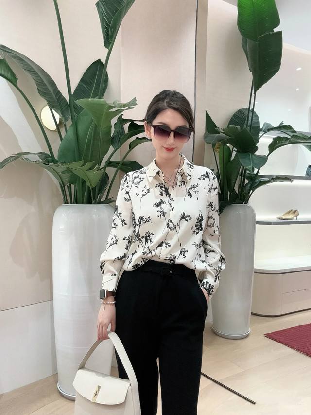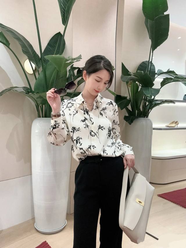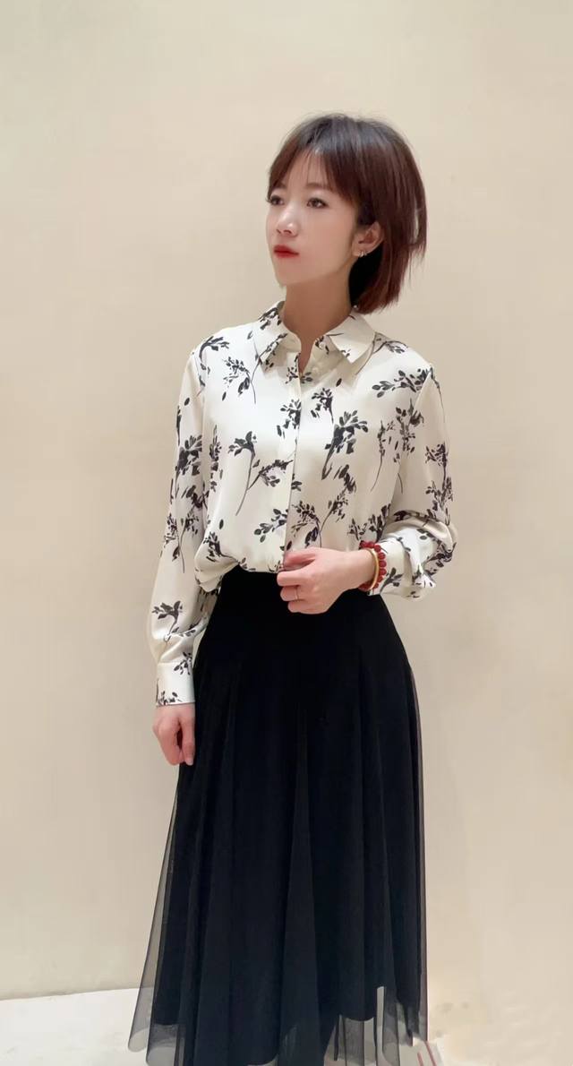 The same style as the mall, Bao Mouzi's elegant single product, artistic atmosphere, silk printed shirt, high quality, size: Smlxl