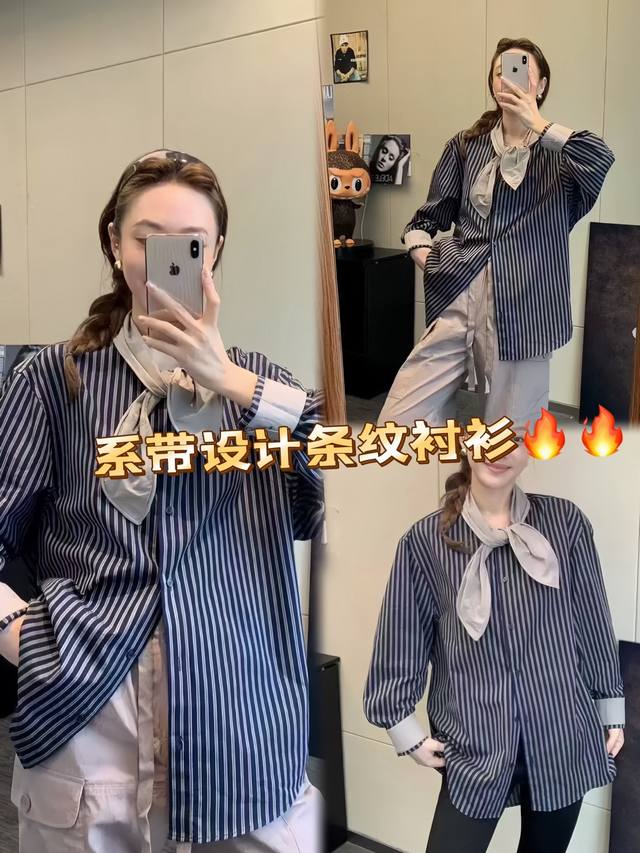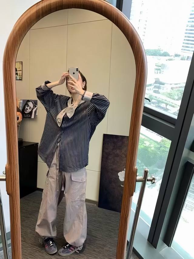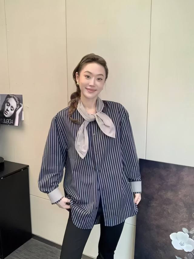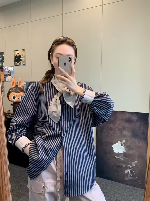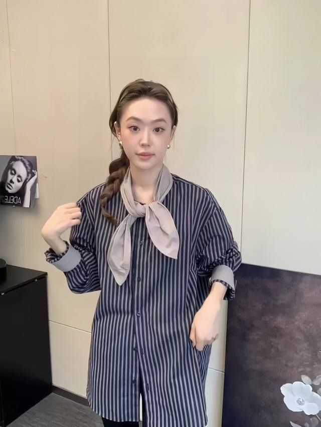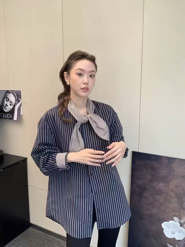 The western style leads the niche color matching striped shirt. The version is loose and covers the flesh. The upper body is thin and loose. It has a high-end texture and can be worn alone or as a jacket. It is a very handsome and elegant striped shirt~Smlxl
