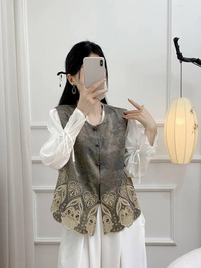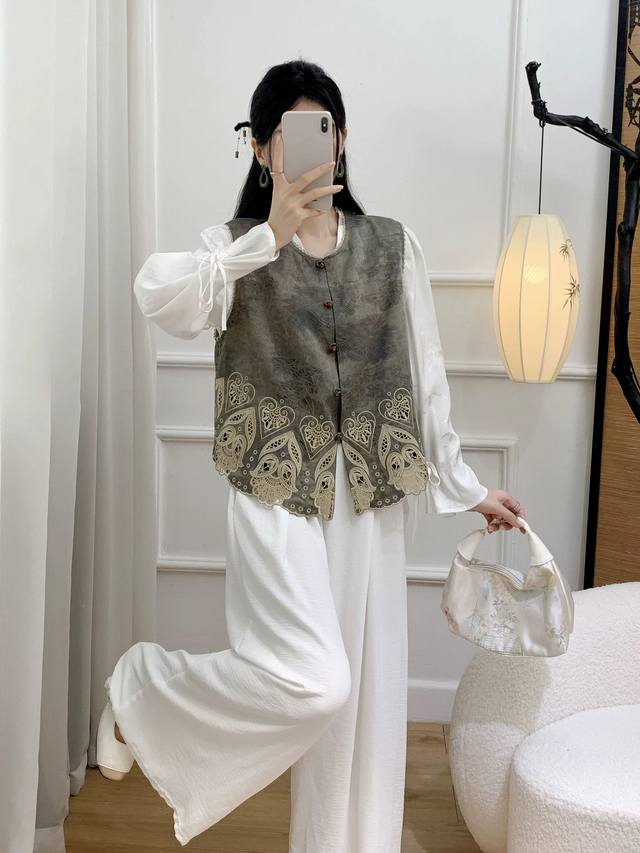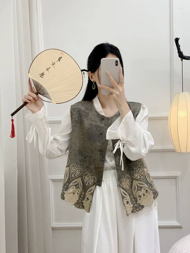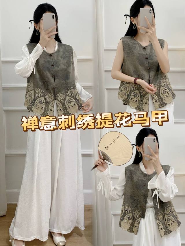 The Zen new Chinese jacquard embroidered vest is exquisite and durable. It is full of Chinese charm when worn with a shirt. The full-page embroidered fabric has soft and elegant colors, low-key luxury, three-dimensional layers and texture, and the upper body is elegant and graceful. Smlxl
