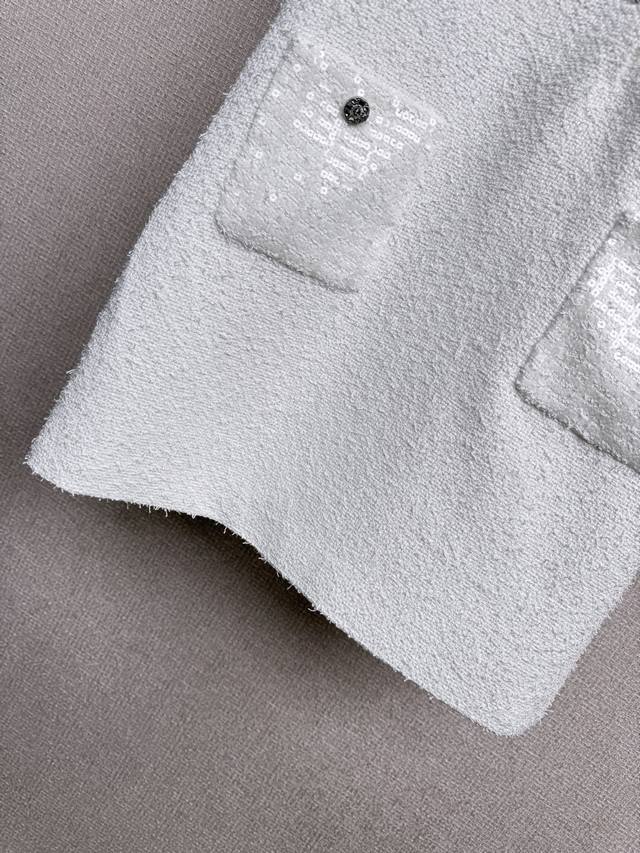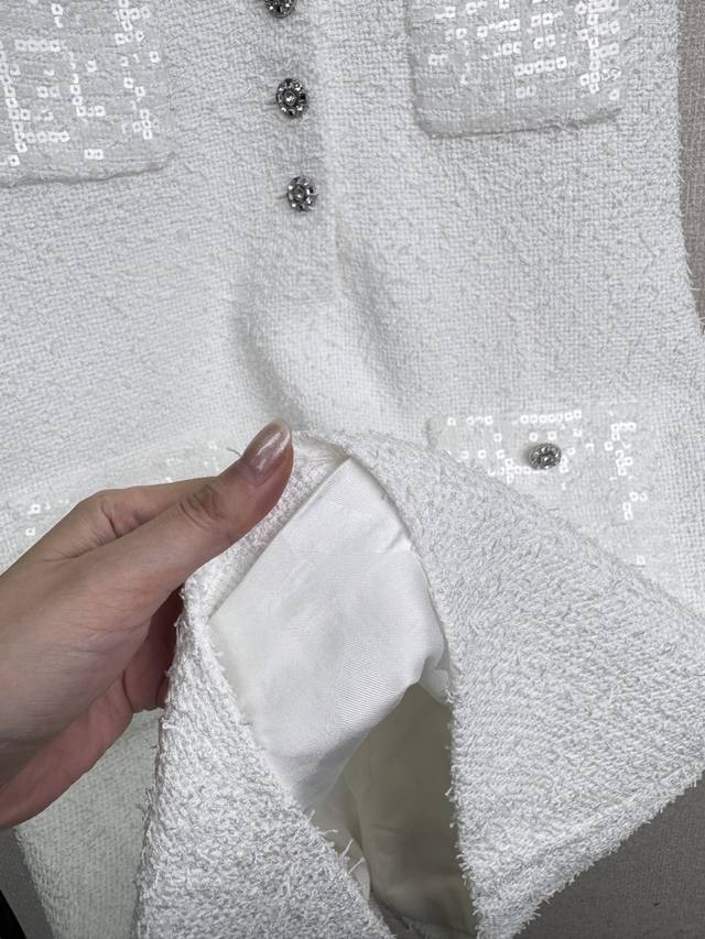 This Chanel-inspired sequined dress and jacket set is absolutely stunning! Everyone, I was blown away when I accidentally paired a blazer with a diamond-white sequined slip dress. It's a completely new level of beauty, perfectly capturing the right vibe. The sharp, sophisticated blazer contrasts beautifully with the shimmering, bouncy sequined dress, creating a balanced and incredibly elegant look. The sequins sparkle under the light, understated yet luxurious, while the white blazer adds a touch of sophistication. This outfit is suitable for both formal occasions and parties, making it perfect for year-end parties, banquets, or afternoon tea with friends. The blazer is flattering and slimming, while the sequined skirt accentuates your figure, highlighting your best features and minimizing any flaws. It's slimming and stylish! Ladies, try this combination and let's all be the most dazzling fashionistas in any setting! (Jacket and dress