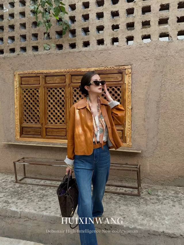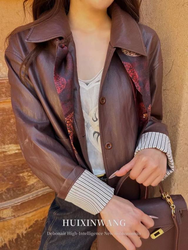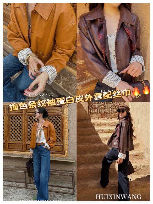 Silk Scarf CP: Paired with a tonal contrasting print silk scarf, this piece instantly elevates your look. The boldness of the protein leather meets the dynamic stripes, while the silk scarf adds a touch of class. This "walking weapon of style" will effortlessly transform your look throughout the season! Smlxl