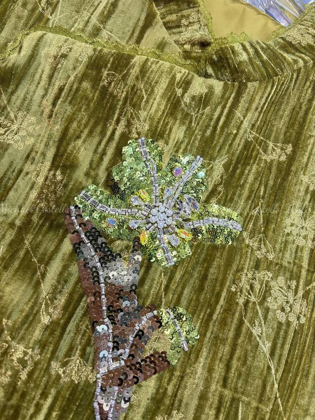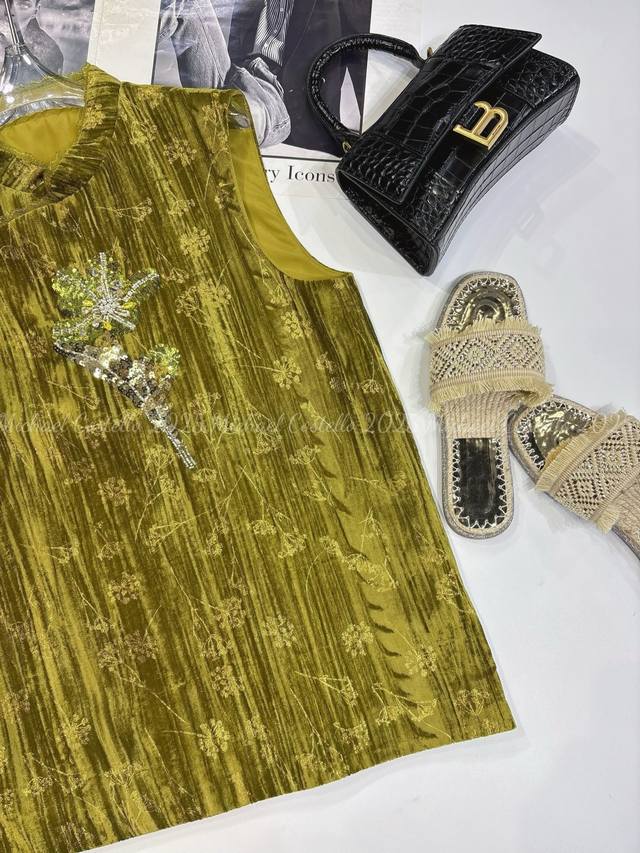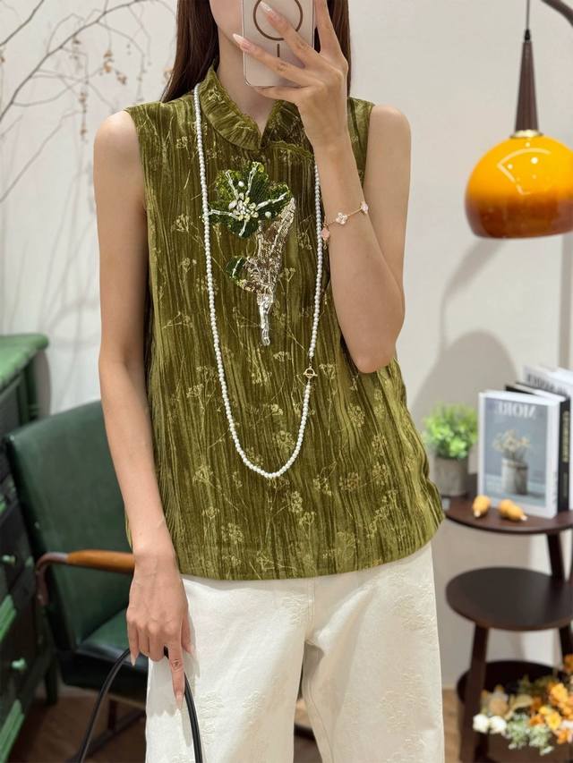 This elegant velvet vest with heavy beading and embroidery is instantly appealing. The rich olive green velvet fabric exudes a delicate luster and is full of texture. The Chinese-style stand-up collar design outlines the elegant neck line. The delicate floral embroidery seems to quietly bloom in the clothes, showing the gentle and elegant temperament of oriental women. Smlxl