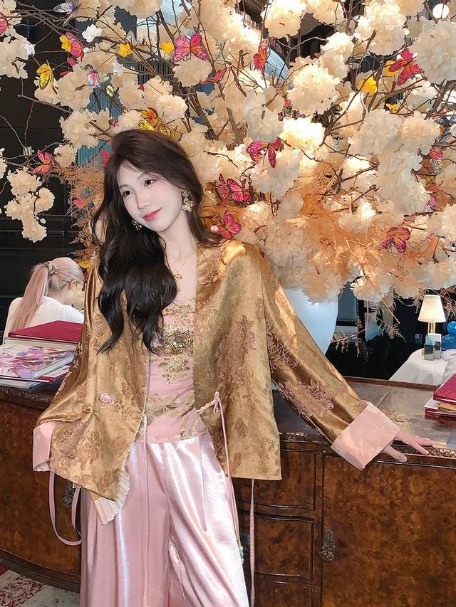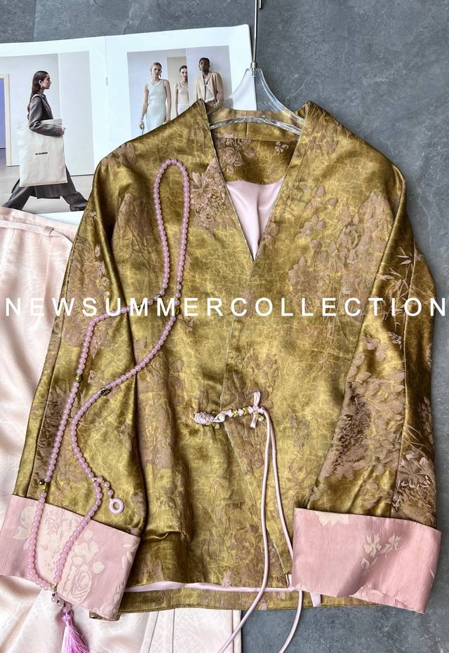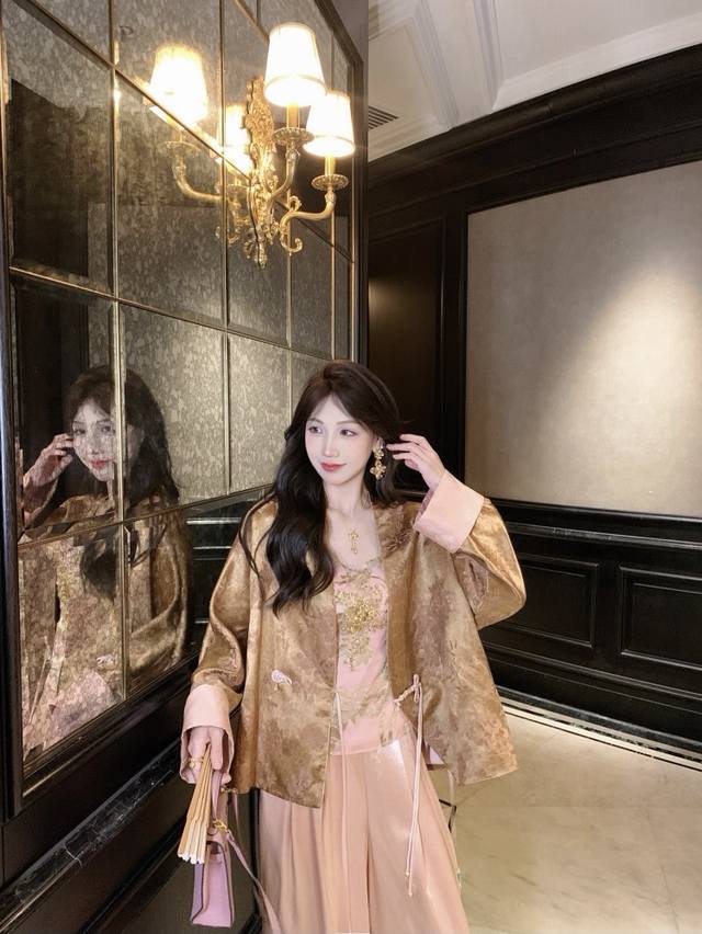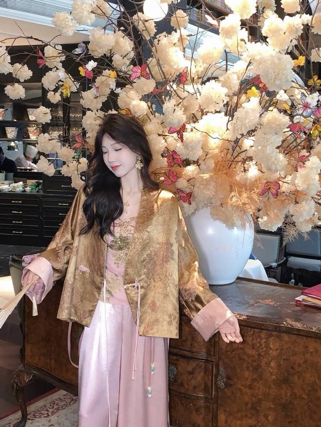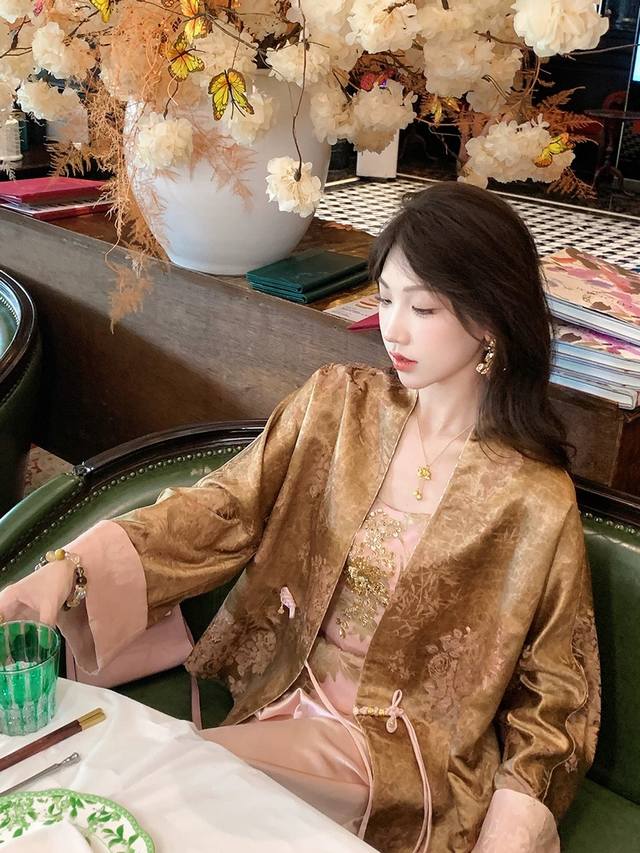 This luxurious jacquard jacket, with a traditional Chinese style, is crafted with three-dimensional tailoring to create a relaxed, relaxed silhouette that conceals excess weight and creates a thin, bright, romantic, oriental aesthetic. The loose silhouette is extremely accommodating to any figure. The Chinese V-neck cleverly modifies the face, while the styling details are refined and durable, highlighting a refined attitude and breaking the monotony to highlight a graceful swan neck. The smooth, refined curves of the neckline create a versatile and practical look. The hand-buttoned placket exudes a rich Chinese style. Smlxl