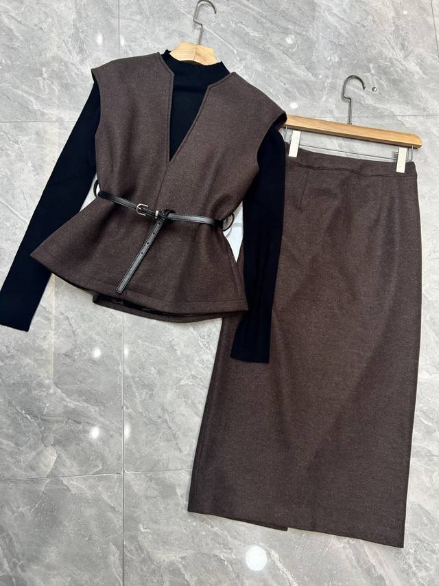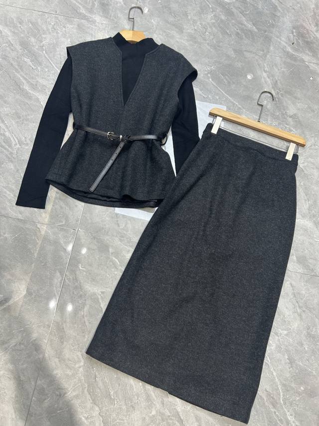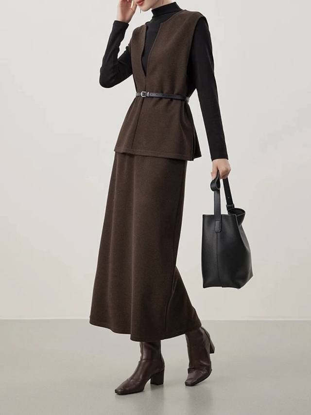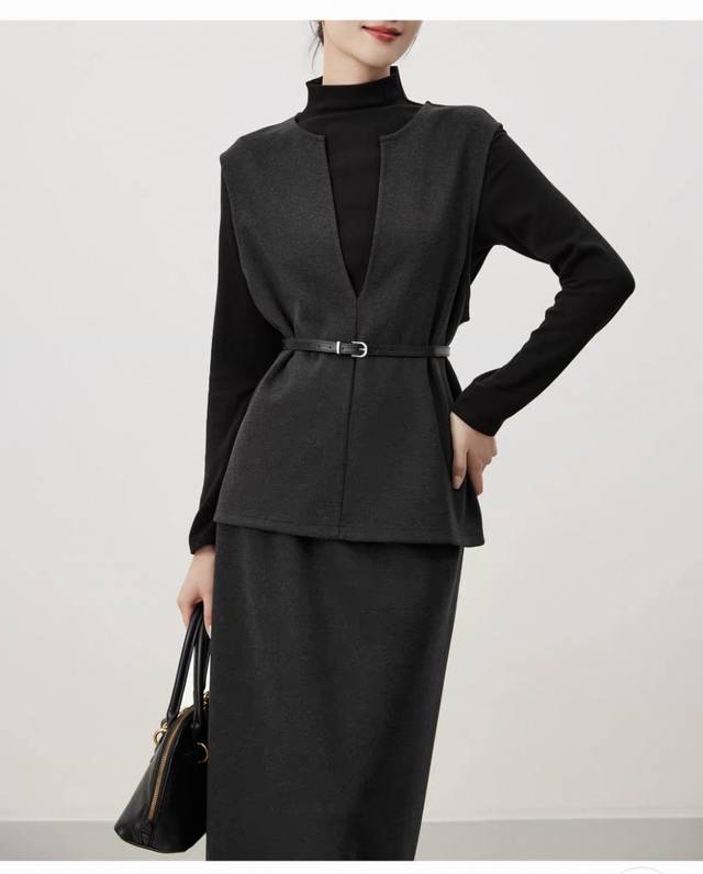 This three-piece set is incredibly beautiful. It's a complete set that exudes a wealthy heiress vibe, showcasing a sophisticated Korean style with a wool vest, sweater, and skirt. Sizes: Smlxl,