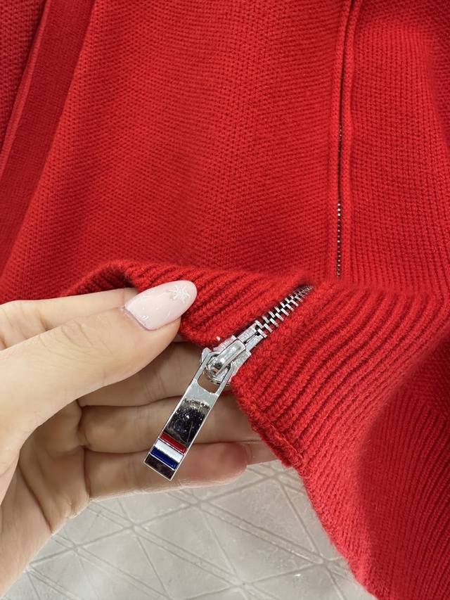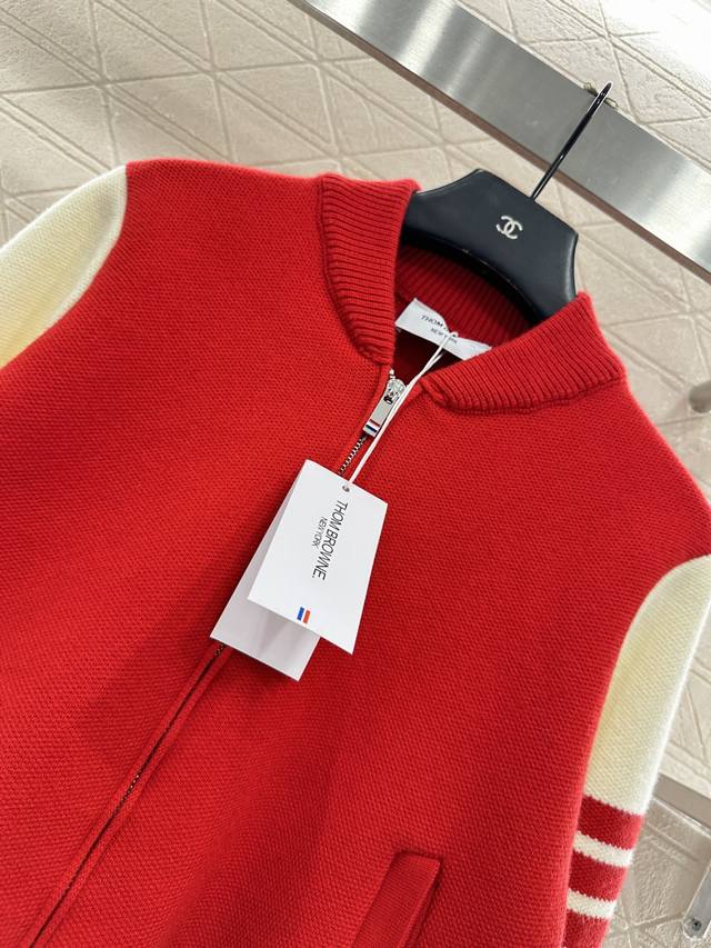 Thom Brown*2025 New Arrival Ddd Knitted Stand Collar Baseball Jacket Ddd. Made with custom Yb wool yarn, it's soft, warm, and skin-friendly. The stand collar baseball jacket design features a color scheme that echoes the body and cuffs, with contrasting off-white sleeves. A horizontal stripe element wraps around one sleeve, highlighting the brand's signature elements. The knitted vertical ribbed trim is elasticated for a snug fit and added warmth. A stylish and trendy look. Custom fabrics and accessories, look for the high-quality version. Two colors: black and red. DDD