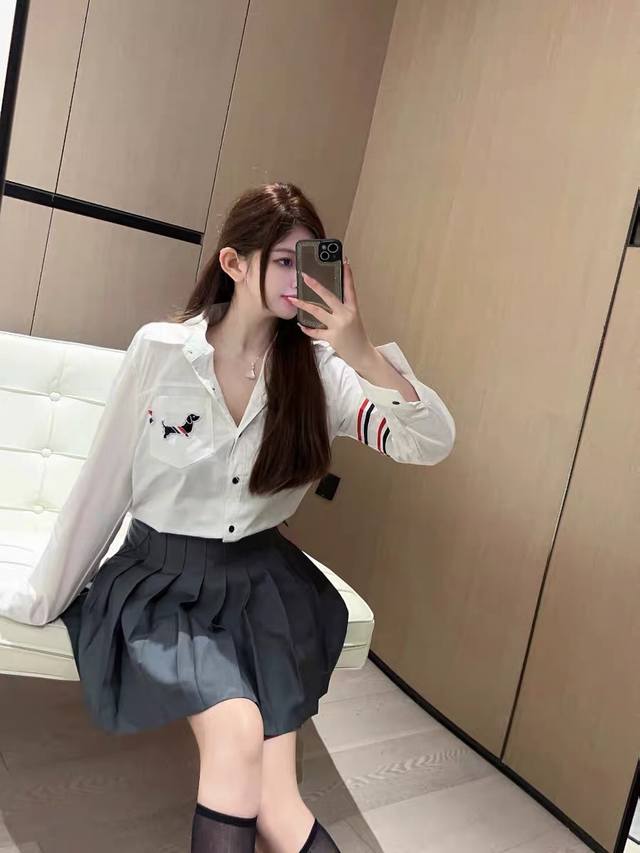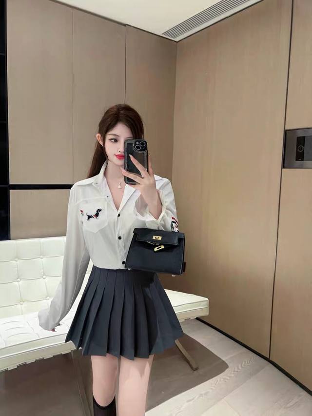 / Thom Browne 2025 Early Autumn New Preppy Style Embroidered Dog Tie White Long Sl