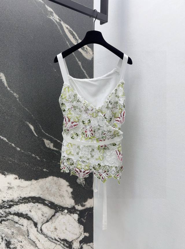 Top and Skirt Cd 25Ss New Spring and Summer Arrival: Heavy-Duty Butterfly Lace Water-Soluble Floral Embroidery Suspender Top + High-Waisted Skirt. Imported lace water-soluble embroidery with high fastness. Custom-dyed colored yarn for full color saturation. Perfect for summer. High-waist design optimizes body proportions and modifies the waistline. Each skirt uses over 2 meters of material, perfectly preserving the drape and layering of the skirt. A must-have for goddesses, creating an elegant outfit that combines romance and ethereal charm. A must-have for fair-skinned and wealthy women. Sml Size S: Bust 90, Length 62, Waist 66, Skirt Length 90.
