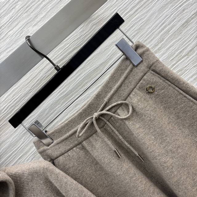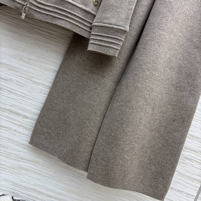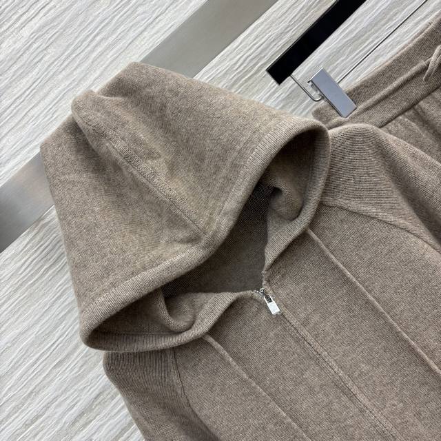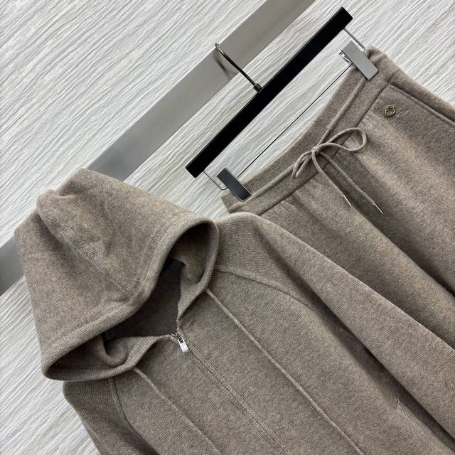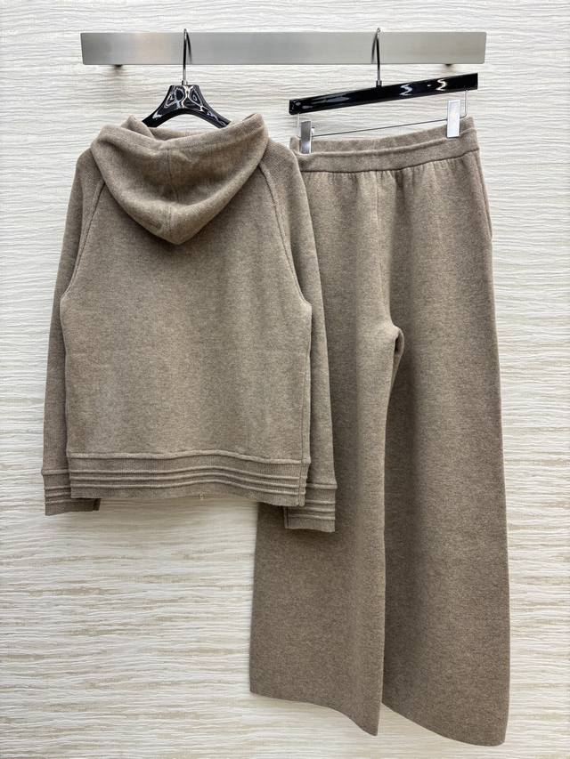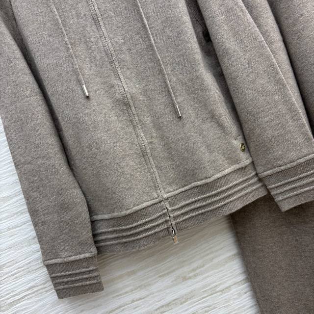 Tops and pants Lp30 autumn and winter hooded cashmere knitted suit Hooded zipper jacket with straight pants A set of tops are fashionable and handsome High-end color matching edges reduce age and are fashionable Custom hardware decorations The tops are retro and casual Girls customized 100% cashmere fabric has a delicate and soft texture Sml