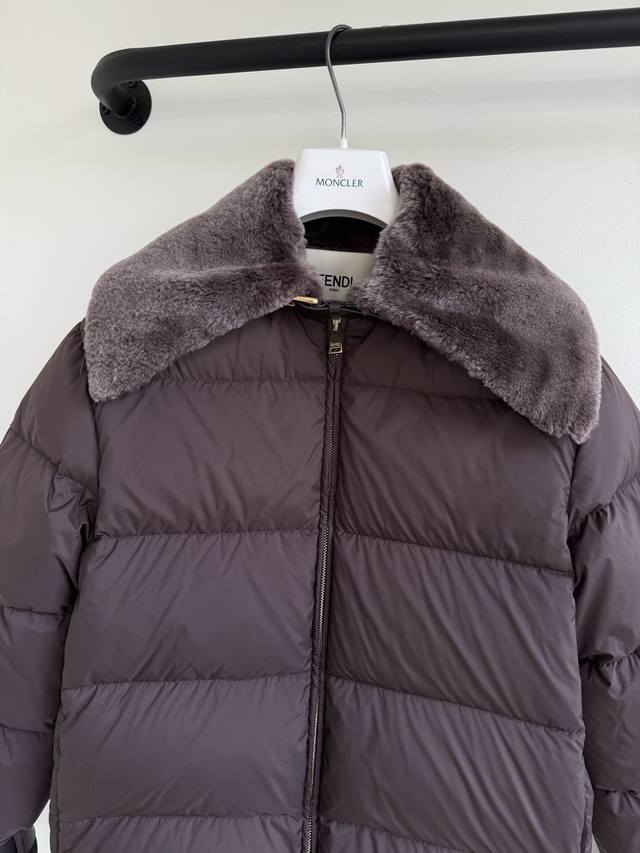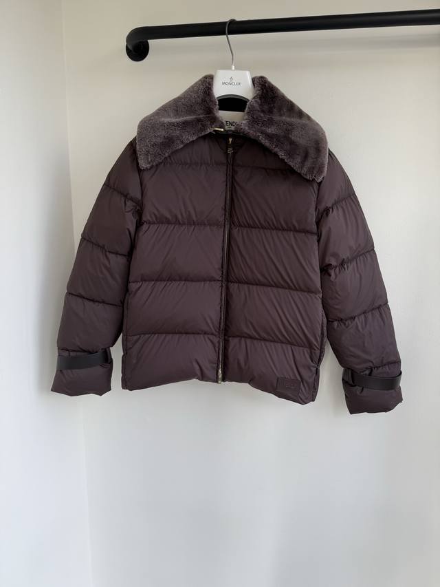 Top-tier version Fd25 Autumn/Winter Limited Edition Solid Color Genuine Sheepskin Fur Collar Metal Buckle Zipper Down Jacket Available Now. This jacket exudes elegance and modern style. Meticulously crafted from cotton, it features a classic silhouette and is adorned with a custom metal zipper, highlighting its classic design. Embroidered leather patch and contrasting details allow for sophisticated styling. Front metal zipper lapel closure. Celebrity style. In stock. Sizes: S, M, L, D.D.