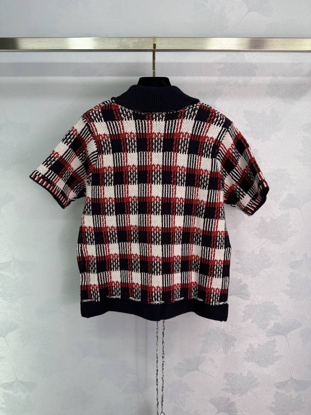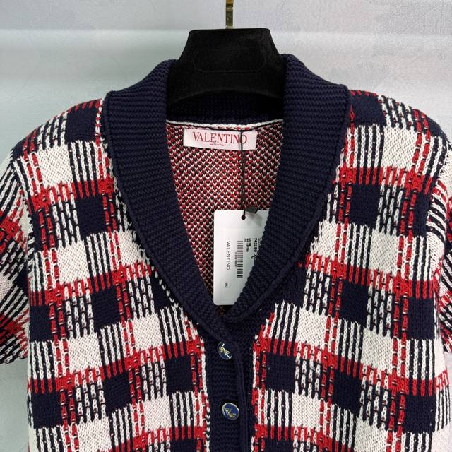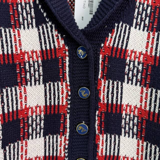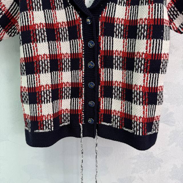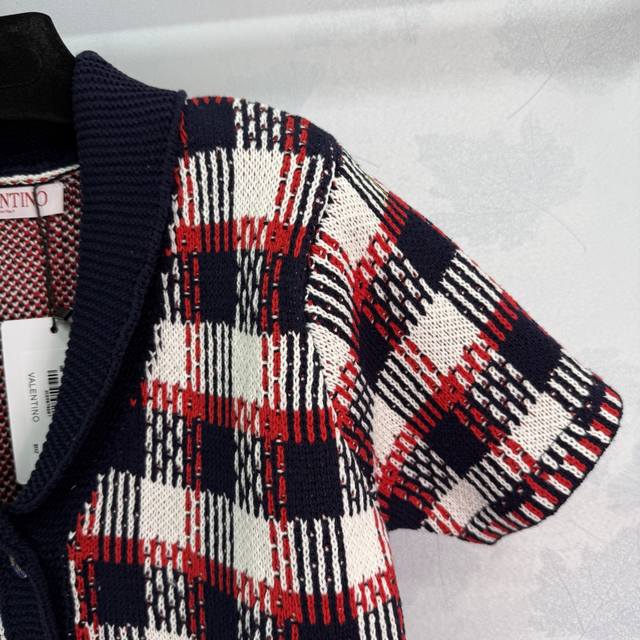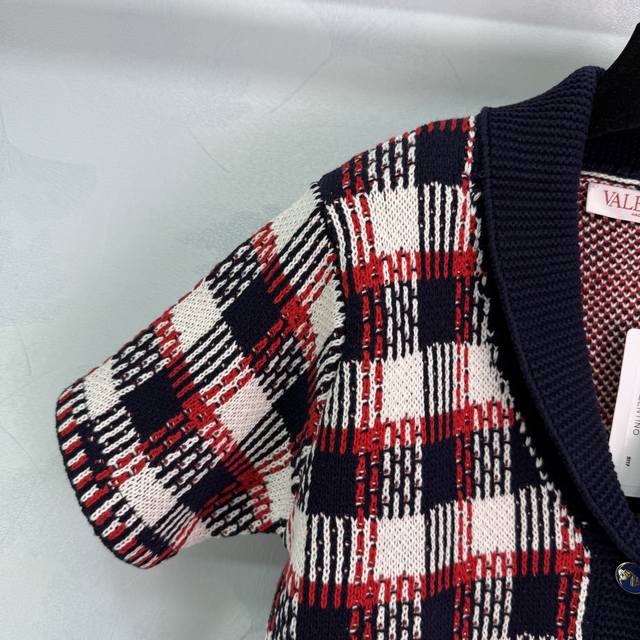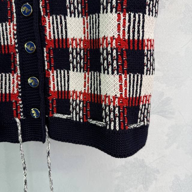 Va*2025 Spring and Summer new checkered knitted cardigan Red, white and black th