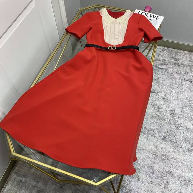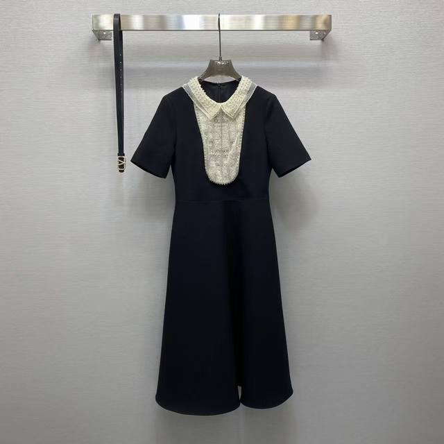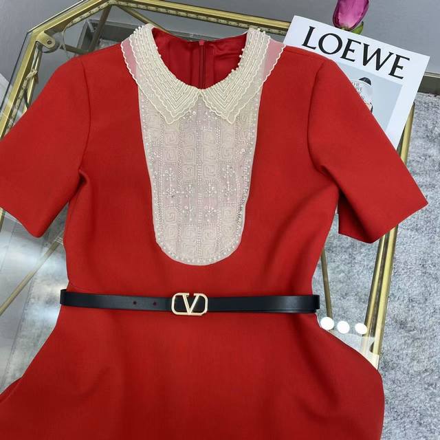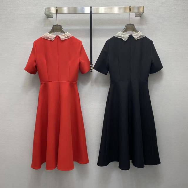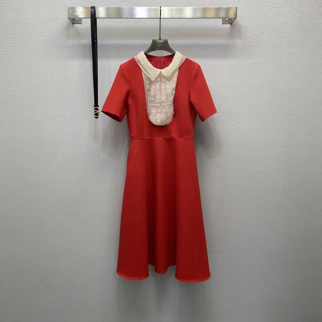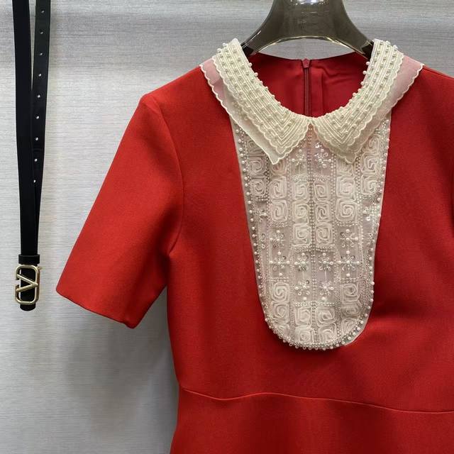 Va2026 Sp This exquisite dress is crafted from select haute couture woven fabric, featuring delicate lace and pearl embellishments at the neckline. The classic red and black color scheme and A-line silhouette exude elegance. Colors: Black, Red. Fabric: Premium woven fabric.