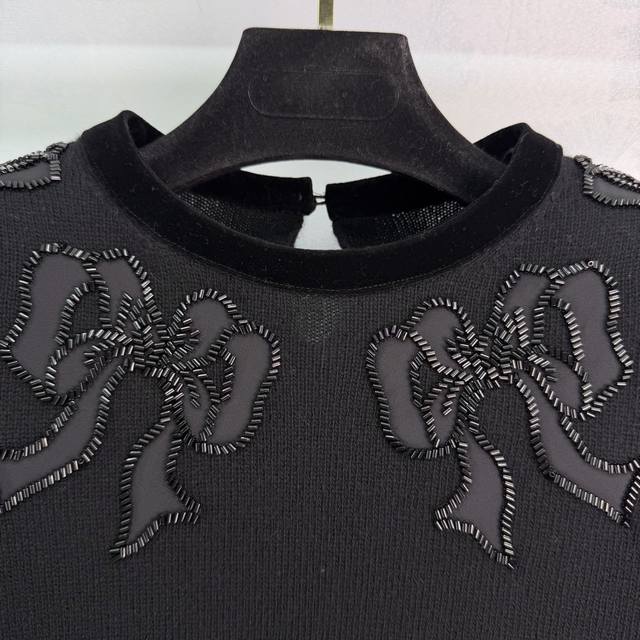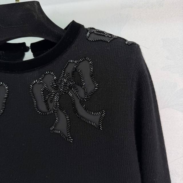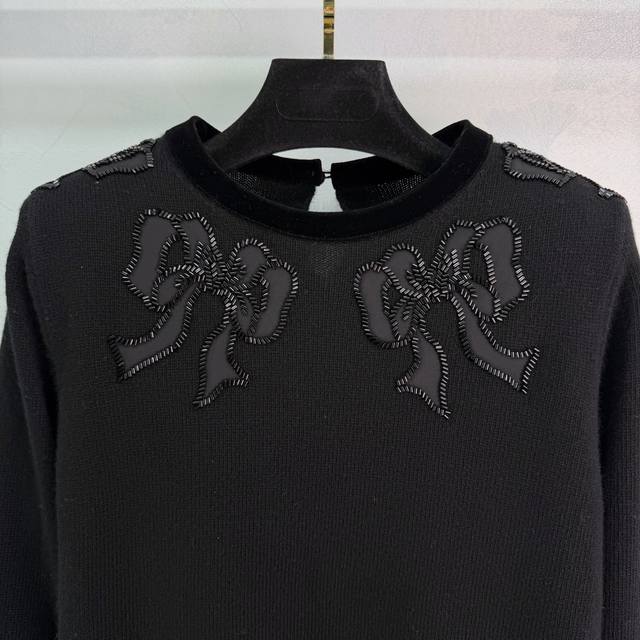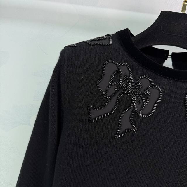 Va*25 Autumn/Winter New Knit Sweater: A blend of sweet and cool styles, featuring a 3D butterfly knot embellishment at the chest, black sequins and beadwork, and an ultra-refined, loose-fitting straight cut that's incredibly flattering. It pairs beautifully with skirts or trousers, effortlessly creating a sweet and edgy look! 1 color, 3 sizes: S, M, L, T226B. DDD