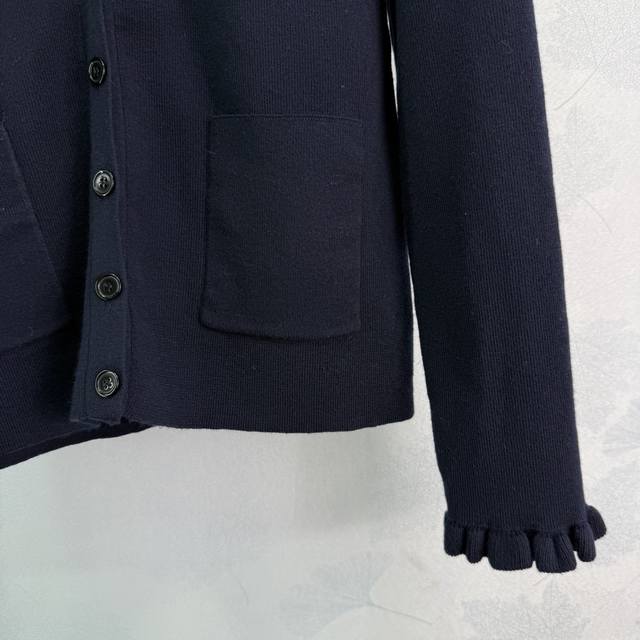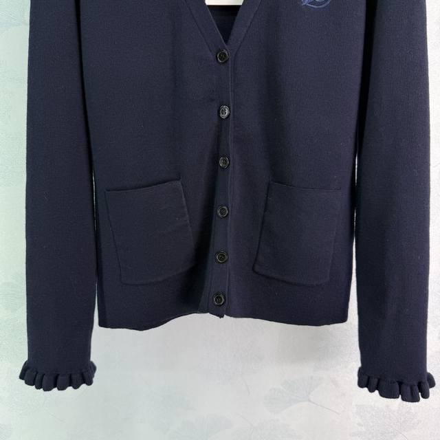 Va*25 Autumn/Winter New V-Neck Cardigan with Ruffled Cuffs - Super Cute! Embroidered Logo on Chest - Simple and Elegant. 100% Pure Wool Fabric - Soft and Comfortable. V-Neck Design Shows Off Collarbone - Slimming and Flattering. Looks Great with Skirts or Pants! 1 Color, 3 Sizes: S, M, L, T226B. DDD