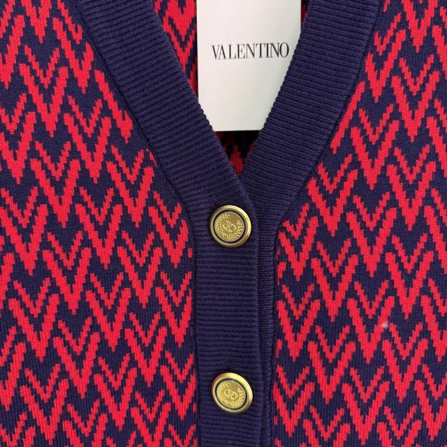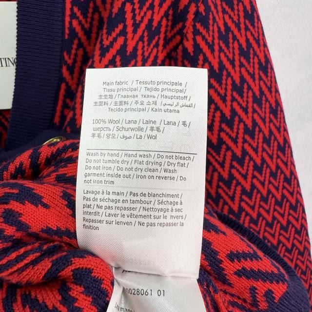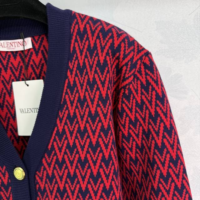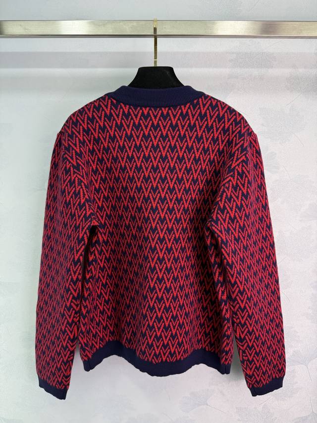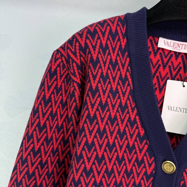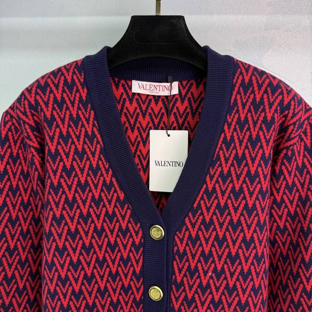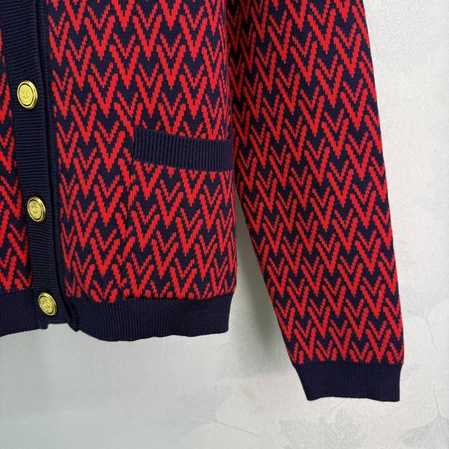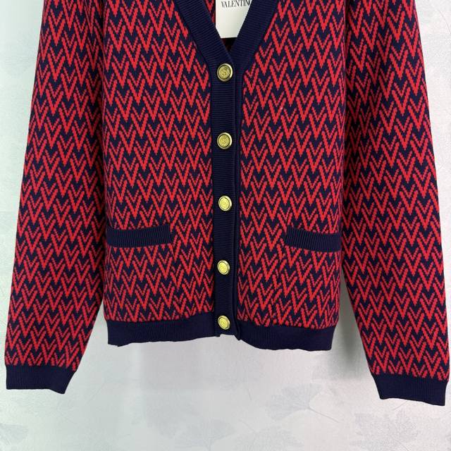 Va*25 New Fall/Winter V-neck knitted cardigan featuring a red and blue contrasti