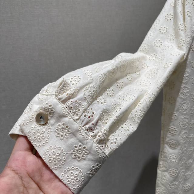 Val Warren 25 Early Autumn New Hollow Long Sleeve Shirt Heavy Hollow Flower Patt