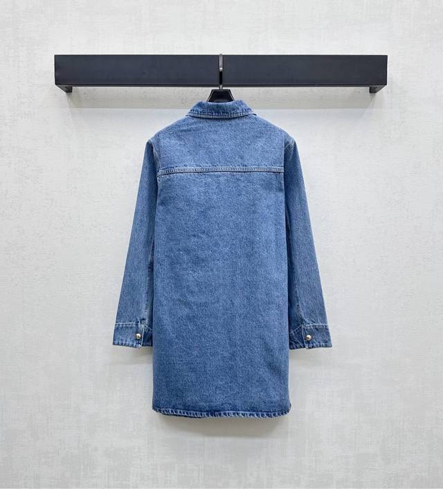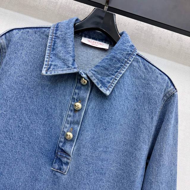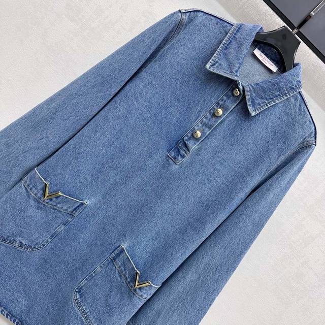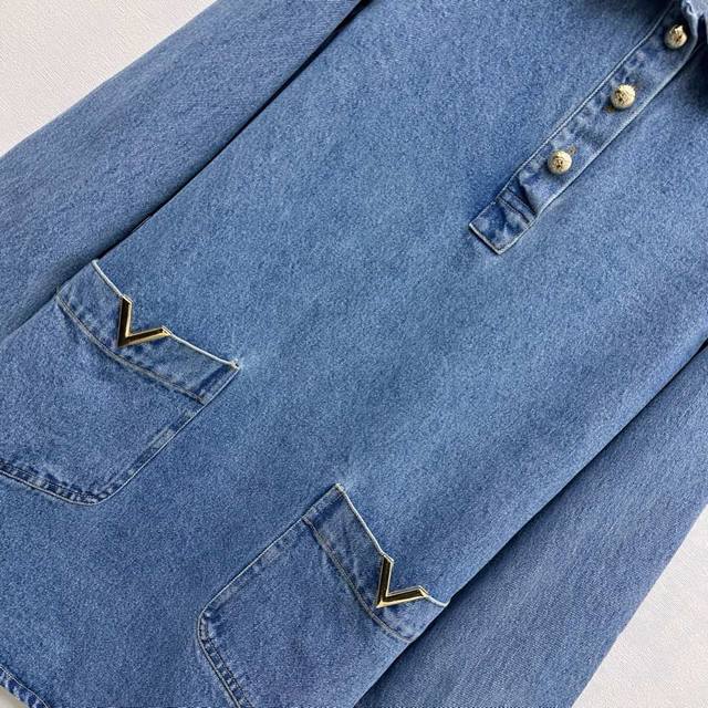 Valentin*2025 New Arrival Lapel Denim Dress Custom Made YB Imported Twill Cotton Denim Material Crisp, Comfortable, and Stylish Enzyme Washable for Resistant Color Transfer and Fading Half-Placket Engraved Button Adjustable Design Adds Layered Style Symmetrical Pockets Signature V Logo Embellished to Highlight Brand's Key Features Developed Fabrics and Accessories Lapel Long-Sleeve Dress Cut for an Elegant, Retro-Leisure Fit. A Must-Have for Commuters.