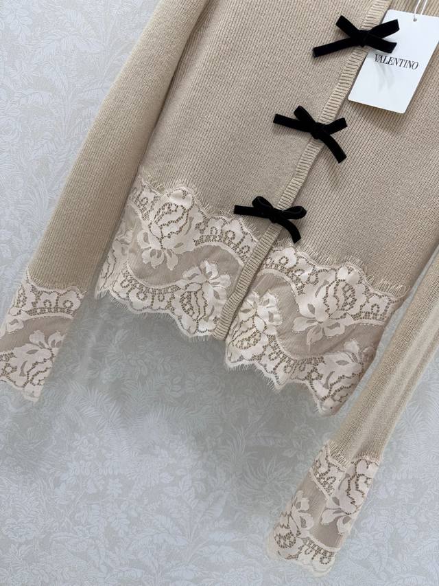 Valentin*25 Autumn/Winter New Arrival! High-end lace-trimmed bow-knit cardigan! Sexy lace embellishments and a round neck design that flatters the figure! Custom-made yarn for a delicate and comfortable feel! 16-gauge ribbed construction, classic cut that suits all body types, slimming and versatile! Looks great worn alone or as a base layer; highly recommended! Perfect workmanship and quality evident in the details. Single color, sizes 3. Smlb DDD