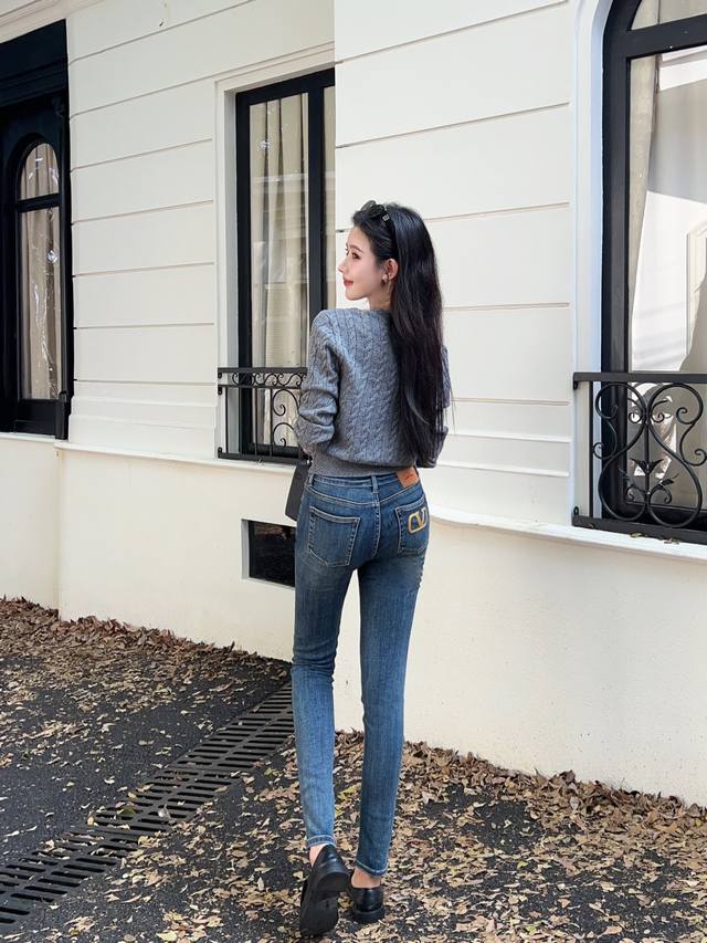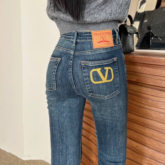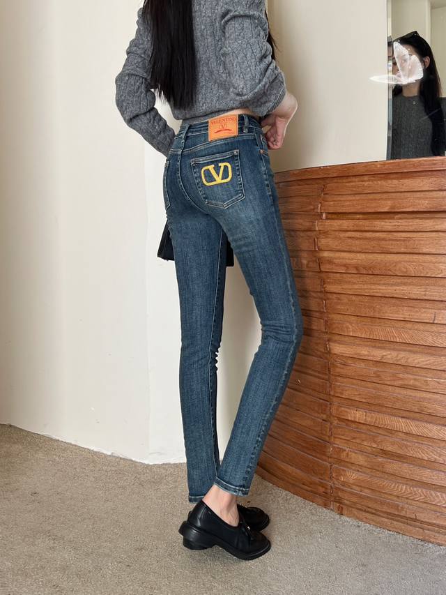 Valenti*O New High-End Custom Original Letter Logo Hardware, Gold Thread Embroidery on Back Pockets, Slim Fit, Stretch Skinny Jeans! Blue, Sizes 26, 27, 28, 29, 30 (28): Waist 68-74cm; Length 94cm, High-Stretch Fabric DDD