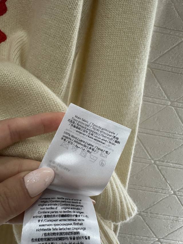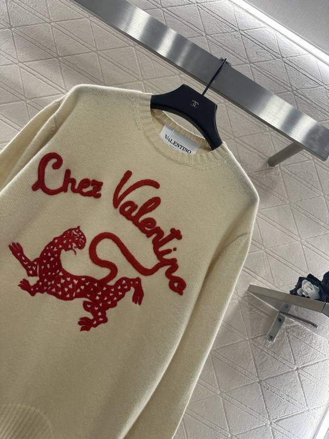 Valentun*2026 New Arrival Ddd Lunar New Year Color-Blocked Logo Crochet Knit Sweater Ddd New Year Limited Series # Custom Yb wool yarn, comfortable to wear, high-quality feel, round neck knit pullover sweater cut, two-color yarn interwoven to present a high-contrast background logo, large area of embroidery in the center outlining the cursive lettering, combined with paper-cut style leopard and beast, full of year-end festive feeling, ribbed edge regular fit treatment, relaxed and stylish to wear. Custom fabric and accessories, look for the high version, 2 colors beige and red DDD