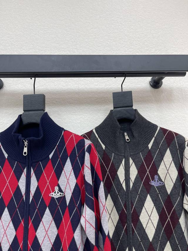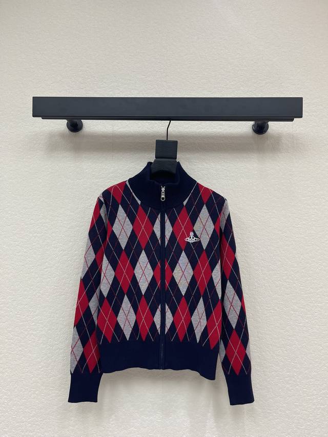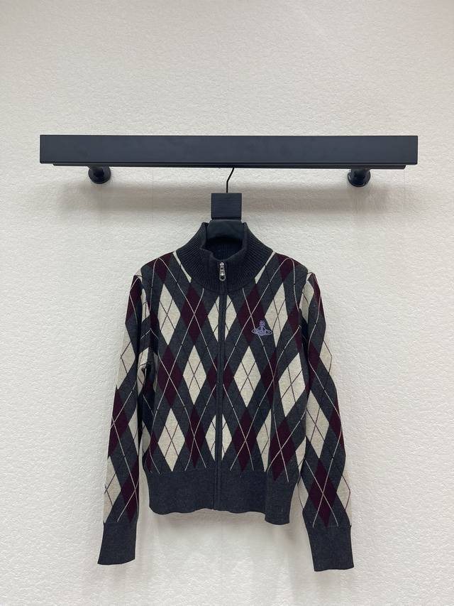 Vivienewestwoo*Vivienewestwoo 2025 Autumn/Winter New Arrival: Diamond Pattern Stand Collar Knit Long-Sleeve Cardigan! Made with custom imported wool yarn, finely knitted for a clear, soft, and skin-friendly texture. The stand collar knit cardigan features an all-over diamond pattern with multiple colors, ribbed edges on the neckline, cuffs, and hem for maximum elasticity. It also features Saturn embroidery on the chest. The design is flattering and youthful! Sizes: Sml, Aa. DDD