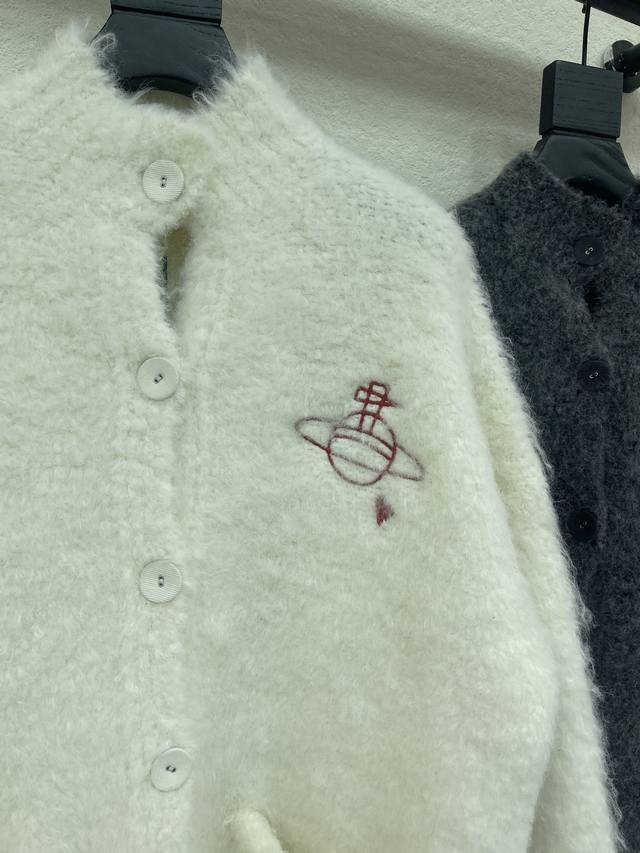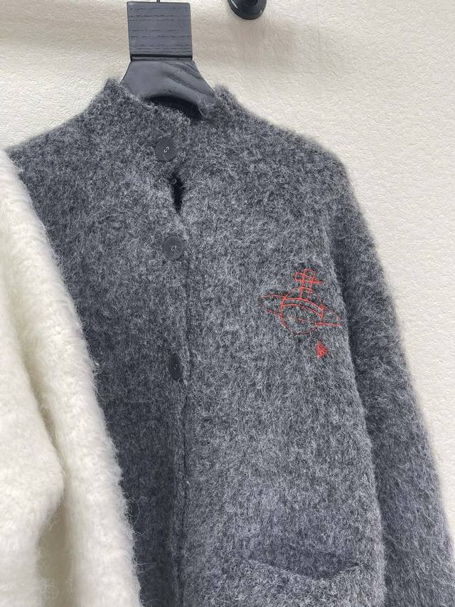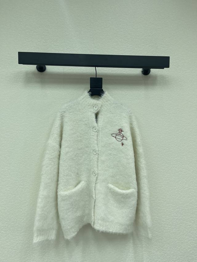 Vivienewestwoo*Vivienewestwoo 2026 Early Spring New Style Fluffy Stand Collar Knit Cardigan! Made of custom imported sheep wool knit material, it's thick, warm, and comfortable. The contrasting embroidered Saturn pattern on the chest adds versatility to the outfit. Perfect for autumn and winter, the fluffy texture exudes a relaxed feel and looks great with any everyday outfit. It's stylish whether worn alone or layered! Sml Aa DDD