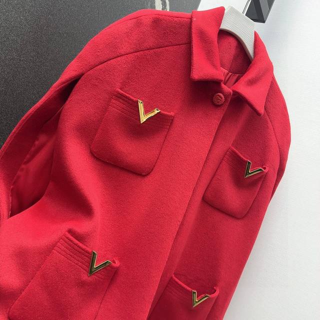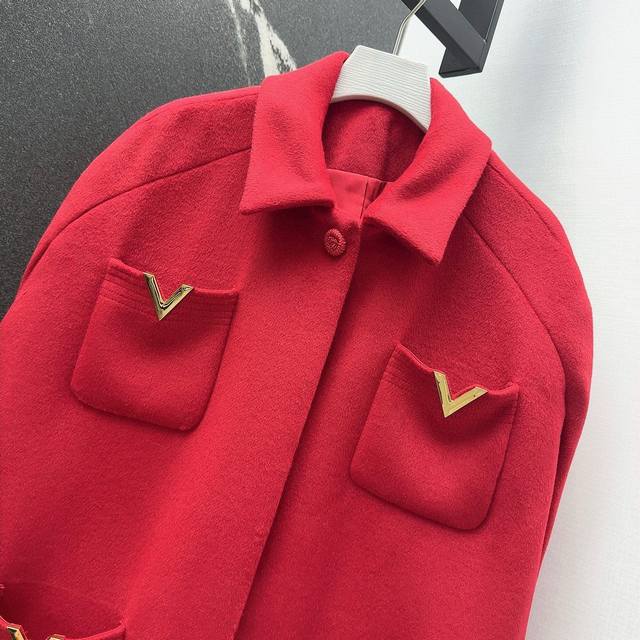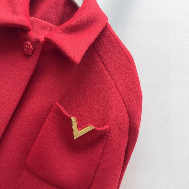 Vltn 25Ss A popular new autumn/winter item! This Chinese red cape-style wool coat with four pockets has a festive feel. You'll fall in love with it the moment you put it on! It's an absolute must-have for autumn/winter. High-quality craftsmanship, custom-made, handcrafted flower button embellishments, understated luxury. The cape design is flattering and slimming, suitable for all body types. Perfect for Mid-Autumn Festival, National Day, Christmas, and Chinese New Year, this coat gives you a sophisticated and elegant look. Sizes S, M, and D: S (Bust 122cm, Length 81cm)