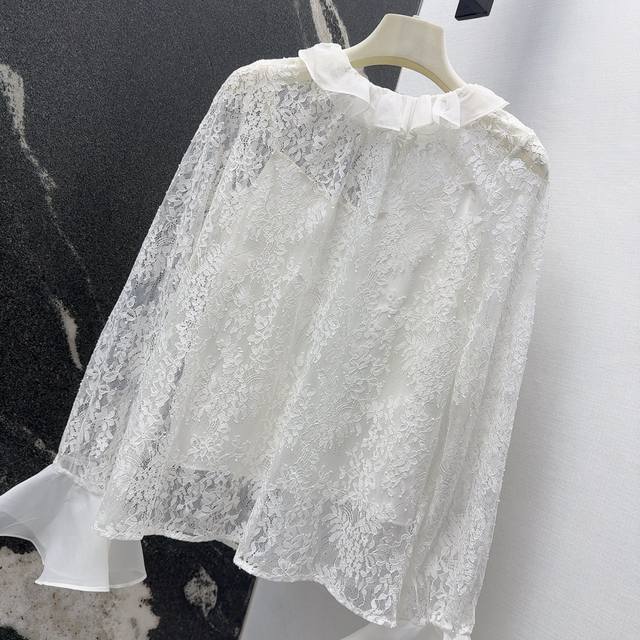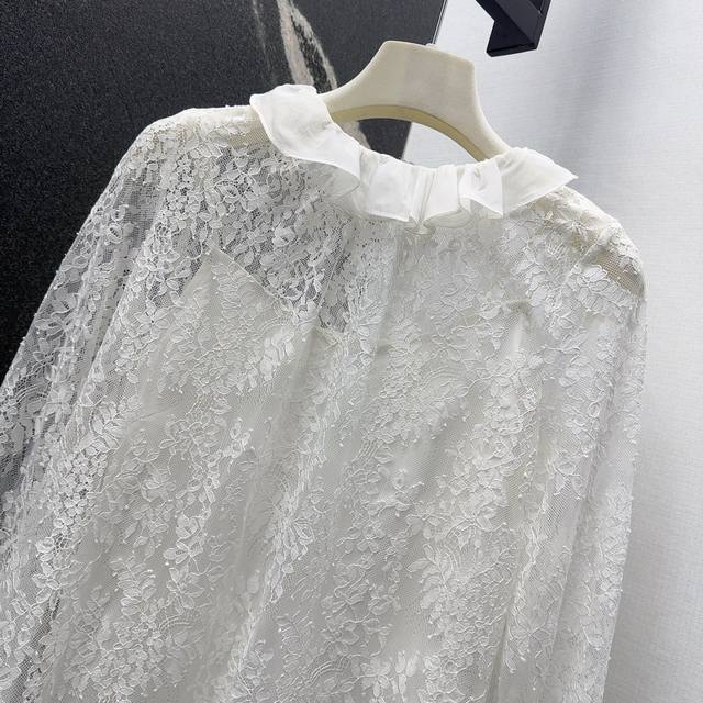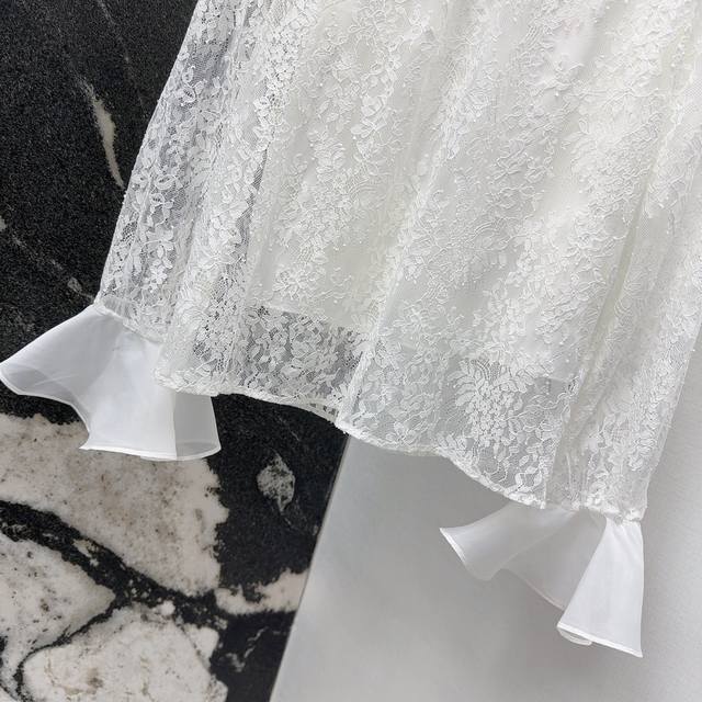 Vltn 25Ss New autumn and winter French sweet style solid color lace two-piece top with a whole elegant and retro temperament, very gentle, all-over lace fabric with exquisite craftsmanship, full of femininity, solid color, simple and easy to wear, suitable for commuting, daily life and vacation, highly recommended for self-use. Sml S size: chest 98, length 62