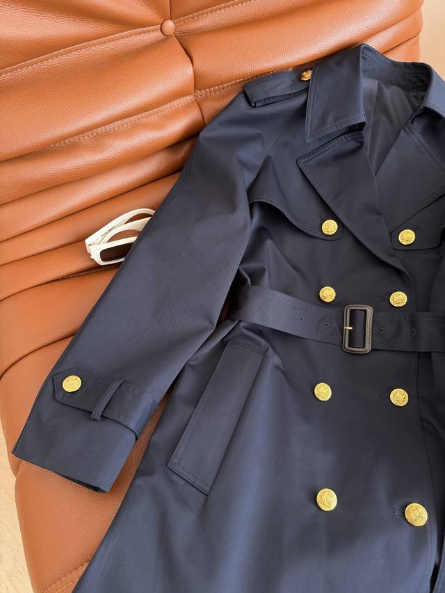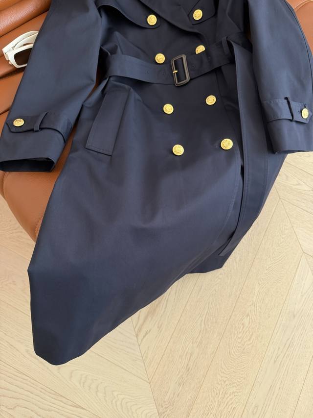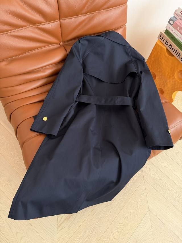 Walking Aura 25Fw Navy Blue Belt Trench Coat This navy blue trench coat is worth collecting. It's made of imported high-quality trench coat fabric, the color is very true and sophisticated. Wearing it gives you a walking aura of confidence. French relaxed, minimalist and fashionable, double-breasted with small gold buttons, full of British style. It's definitely the pinnacle of trench coats. One color, three sizes available.