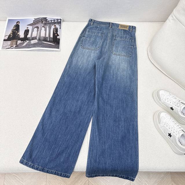 Wear to show long legs Cd 25Ss The latest style of old washed wide-leg jeans in spring and summer. The straight wide-leg high-waisted pants can stretch the proportion of legs to the longest. The upper body is a long-legged girl. Retro blue washed simple and versatile custom denim fabric is super comfortable to wear. One color is available for sale. Sml S size: waist 66 hip 92 pants length 100 manual measurement may have errors.