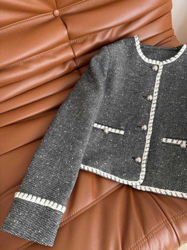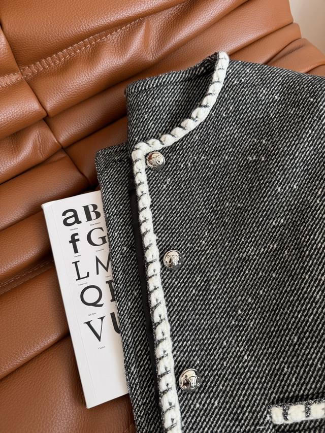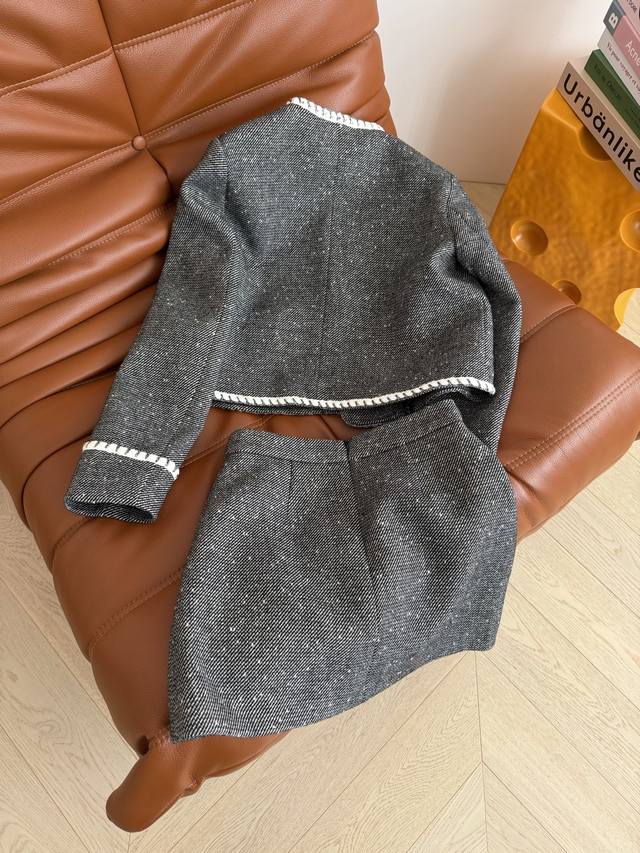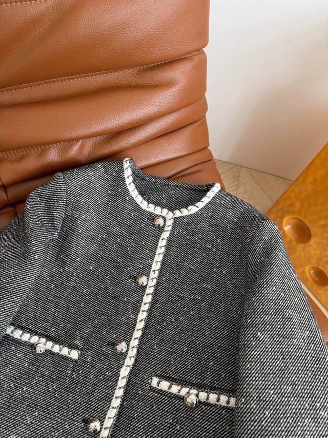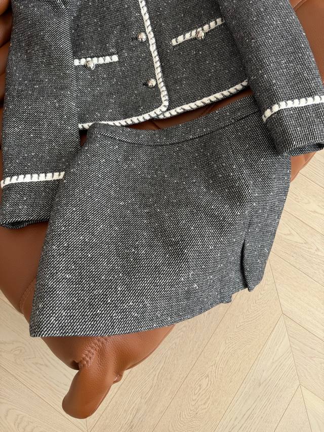 Winter Chic Suit with Ribbon Triumph Embroidery and Silver Button Decoration. This wool suit exudes sophistication and elegance, perfect for both work and everyday wear. The silver woven trim and 3D Arc de Triomphe logo buttons add a touch of class. Made of high-quality wool twill fabric, this suit is highly recommended. Available in one color and three sizes. (