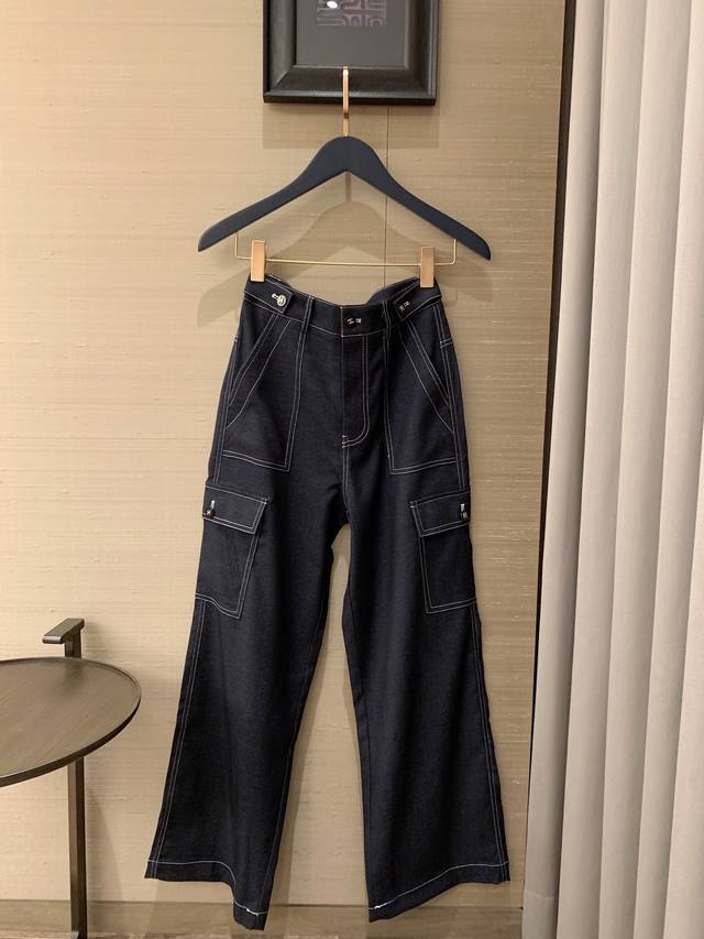 Xiaochan second-hand contrast color Tencel denim work pants Sml