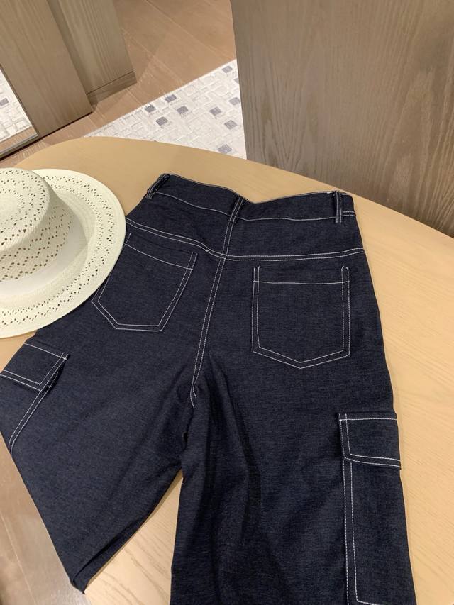 Burberry 2025Ss new twill cotton warhorse logo denim shorts Washing process crea