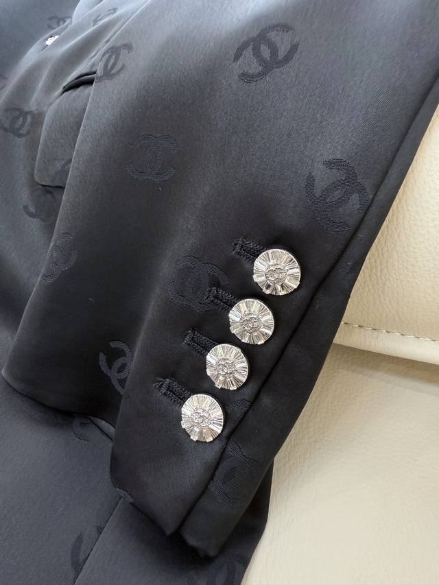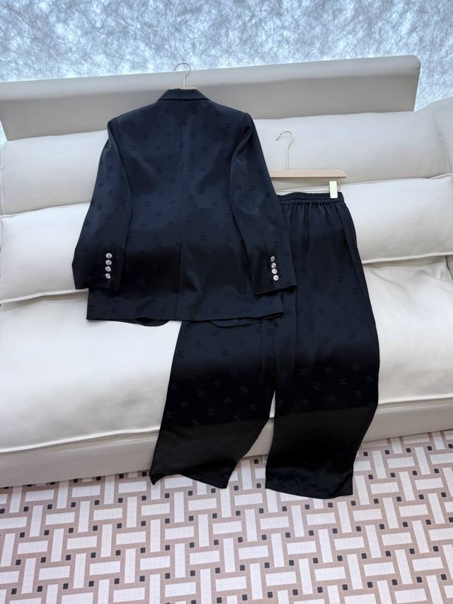 Xiaoxiang 100% acetate letter jacquard long-sleeved jacket and trousers suit black and white Smlxl