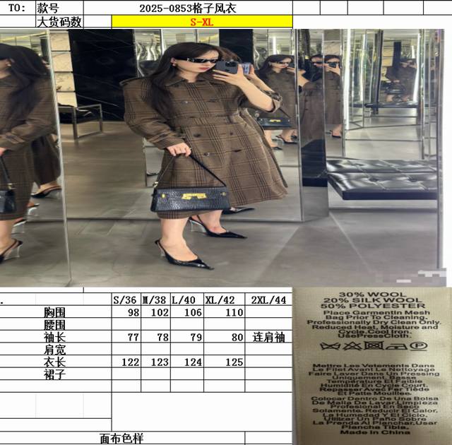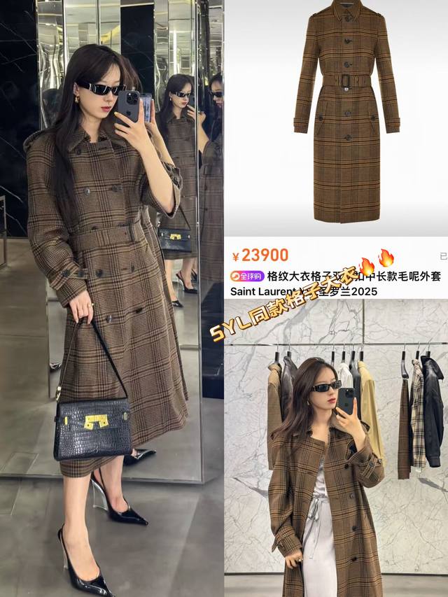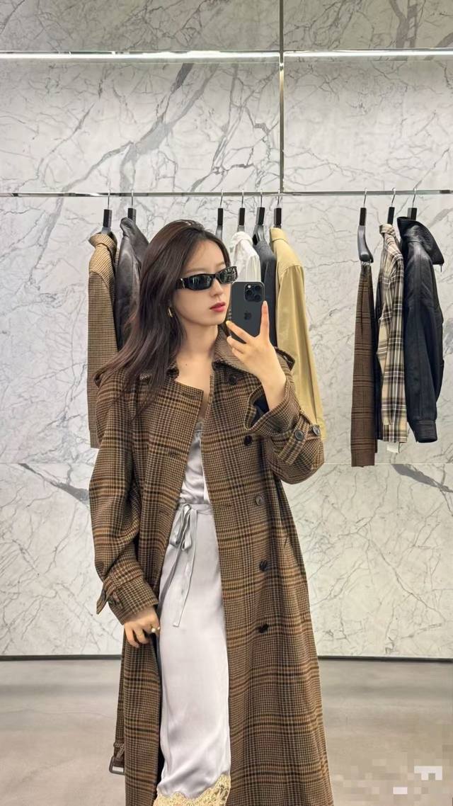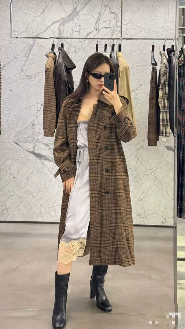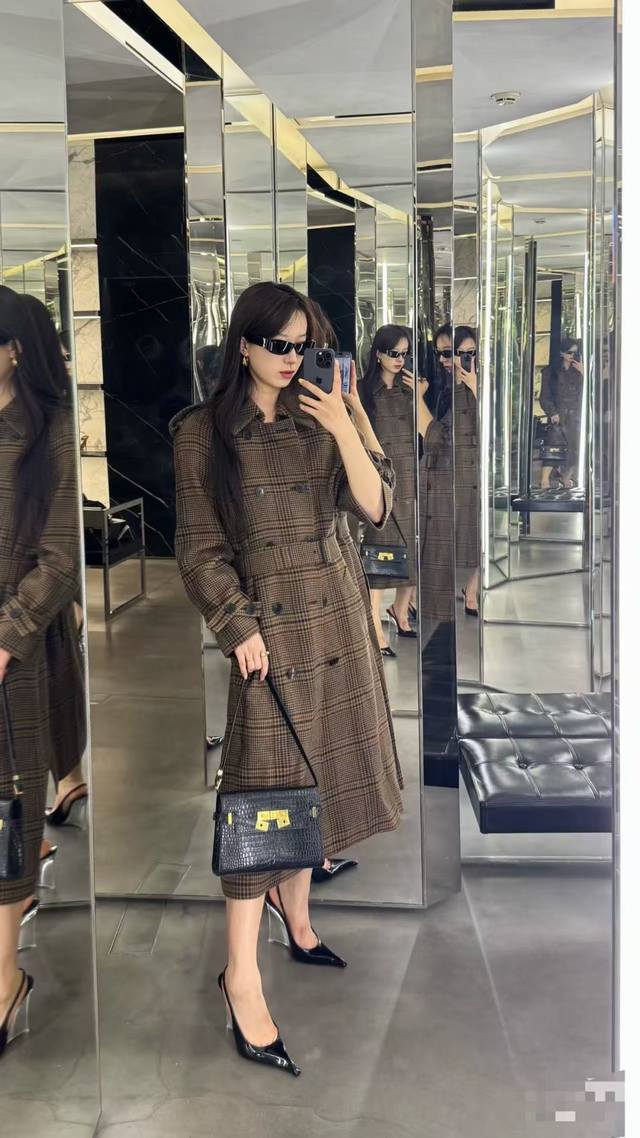 Yang Shulin same style windbreaker worsted wool plaid long coat temperament invincible Smlxl