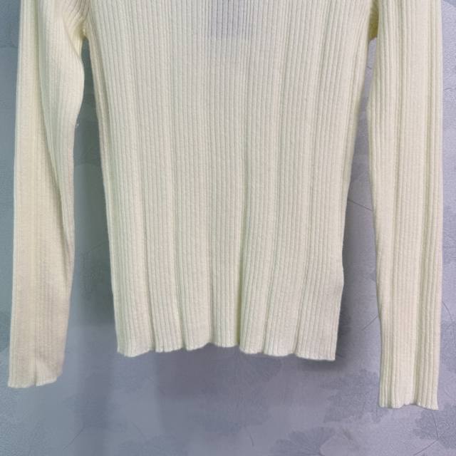 Ys*25 Autumn/Winter New Arrival High-Neck Knit Sweater. Classic vertical stripe design, soft wool, warm and comfortable. The red logo on the chest is highly recognizable. Slim fit, elegant when paired with high-waisted pants or skirts. Suitable for both work and casual wear in autumn and winter. 2 colors, 3 sizes: S, M, L, T, 22, 6, B. DDD