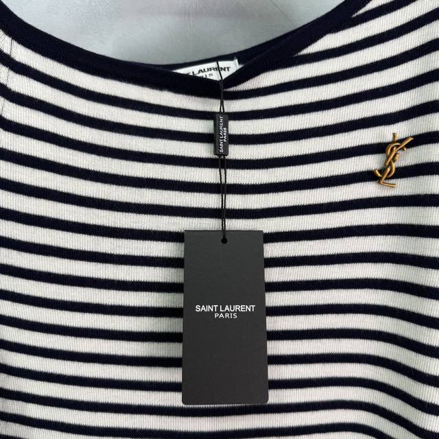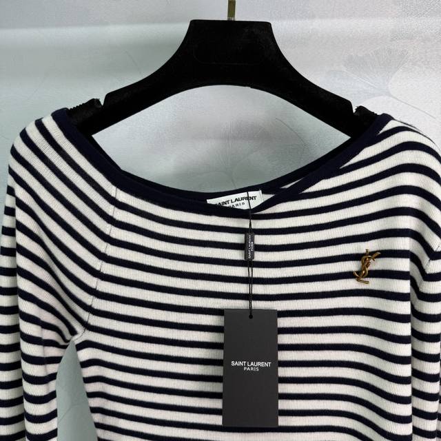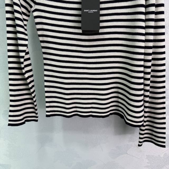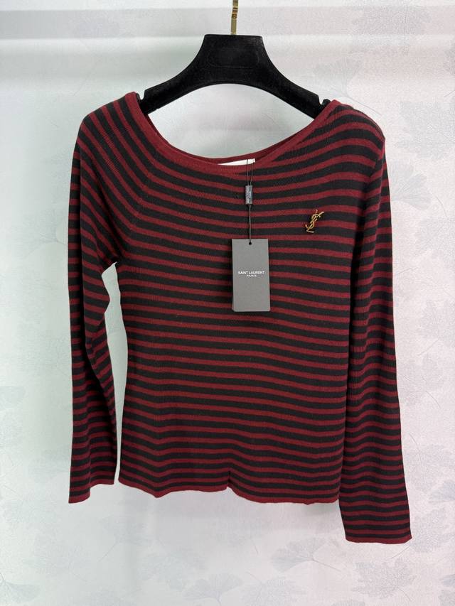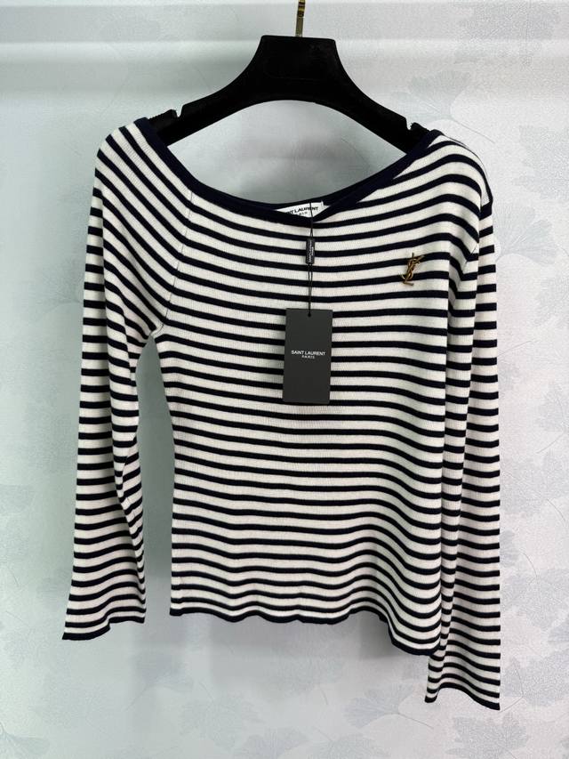 Ys*25 New early fall striped sweater. Classic striped design. Soft and comfortable fabric. Small hardware logo on the chest. Paired with a coat or worn alone. 2 colors, 3 sizes. Sml T226B