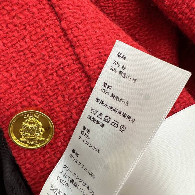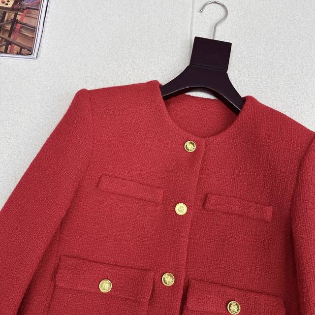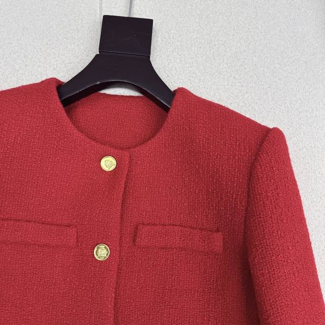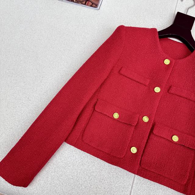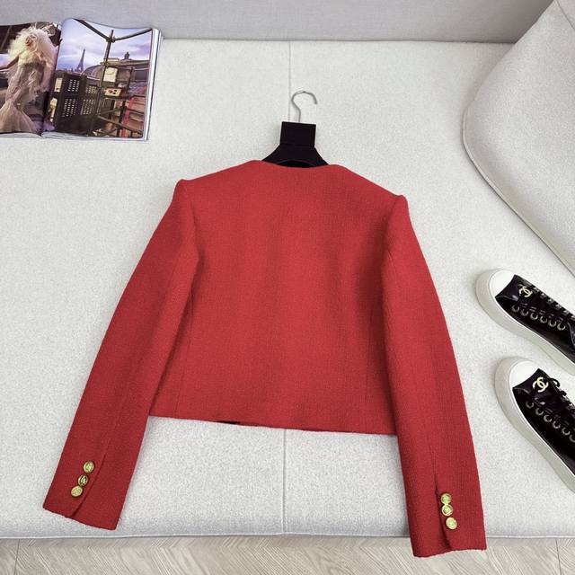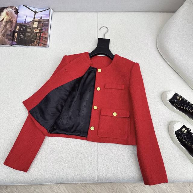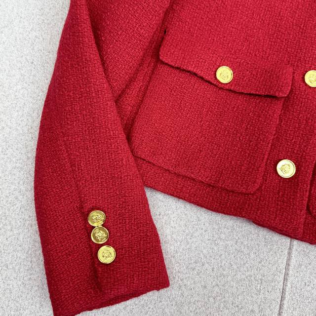 Zhu Zhu's same style Ce 25Ss Autumn/Winter latest exquisite and high-end design tweed jacket, retro red, very flattering and full of sophistication. The classic boxy cut is very elegant and stylish, a top choice for a gentle and sophisticated look, definitely a master of enhancing your temperament. Available in stock in sizes S, M, and L. Size S: Shoulder width 40cm, Bust 100cm, Length 49cm. Manual measurement may have errors.