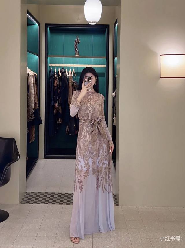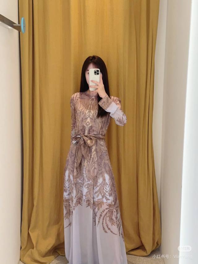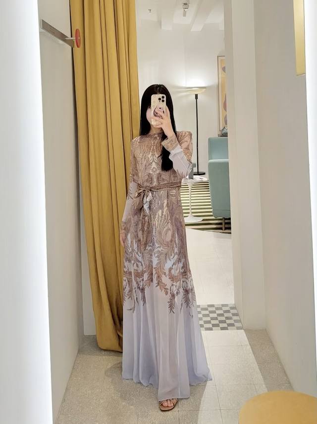 Zimmerma*N Zimmerma, an Australian brand, high-end custom-made silk blend sheer fabric, fashionable retro print, flowing maxi dress, solid color, inner camisole base dress with wide belt! Sizes 1, 2, 3, 4, S, M, L, XL: Bust 96cm, sleeve length 75cm, dress length 145cm; inner camisole bust 88cm, high elasticity, length 96cm (excluding shoulder straps).