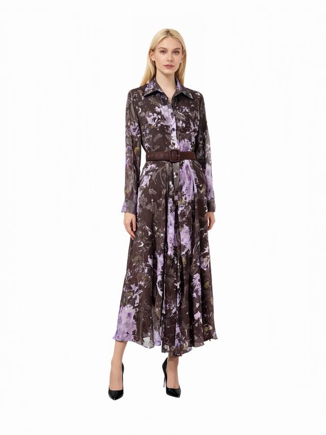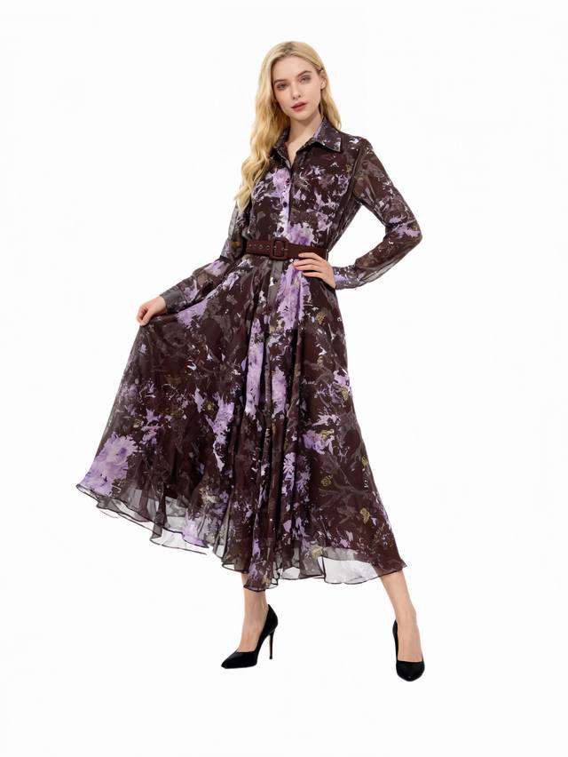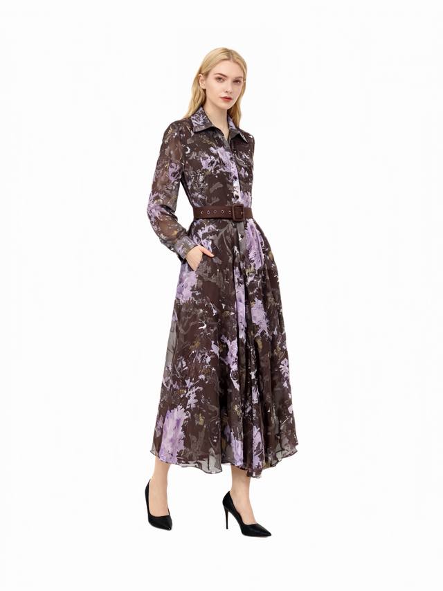 Zimmerman* Zimmerman, an Australian brand, presents a high-end custom-made gold thread jacquard fabric dress with a fashionable tie-dye print, single-breasted placket, belted waist, slimming collar, and long sleeves! Size S: Shoulder width 36cm, Bust 90cm, Waist 70cm, Sleeve length 57cm, Dress length 130cm. (DDD)